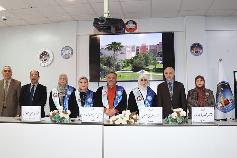 واشترك في لجنة المناقشة عدد من المختصين من كلية العلوم بجامعة الموصل وكلية العلوم الطبية المساندة في جامعة مؤتة الأردنية.