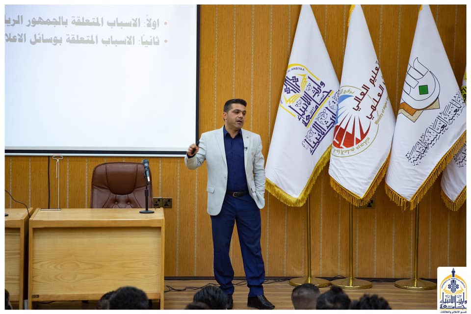 بحضور نخبة من رواد الرياضة الكربلائية وكابتن المنتخب العراقي السابق عماد محمد ، أقام قسم النشاطات الطلابية في جامعة وارث الأنبياء(عليه السلام) وبالتعاون مع مركز رعاية الشباب التابع للعتبة الحسينية المقدسة حلقة نقاشية بعنوان(ثقافة التشجيع الرياضي ونبذ العنف والتعصب ودور الشباب في المحافظة على الممتلكات العامة) القاها مسؤول النشاطات الرياضية في مركز رعاية الشباب الكابتن علي عباس الذي تحدث قائلاً: