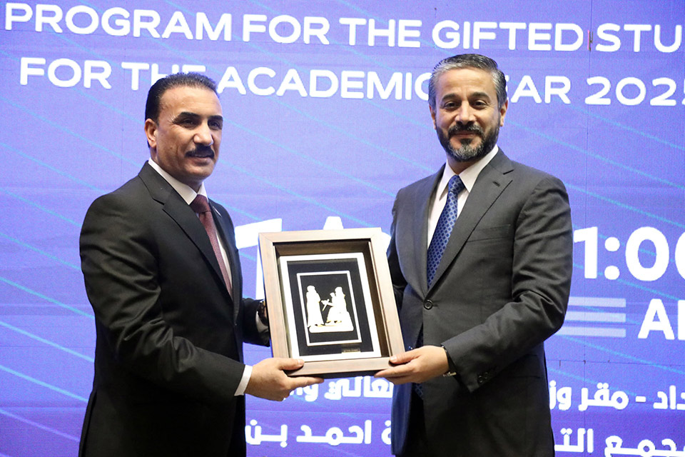 وأكد في كلمته خلال الحفل الخاص بالمناسبة بحضور السيد وزير التربية الدكتور إبراهيم نامس الجبوري والسادة الوكلاء والمستشارين والمديرين العامين وحشد من الطلبة الموهوبين أن وزارة التعليم العالي والبحث العلمي اتخذت إجراءاتها بتأمين المتطلبات المالية اللازمة والتواصل مع الجامعات الأجنبية فيما وجه دائرة البعثات والملحقيات الثقافية بالتنفيذ والمتابعة واستكمال مسار البرنامج الخاص بابتعاث الموهوبين في التخصصات المتنوعة بالجامعات العالمية.