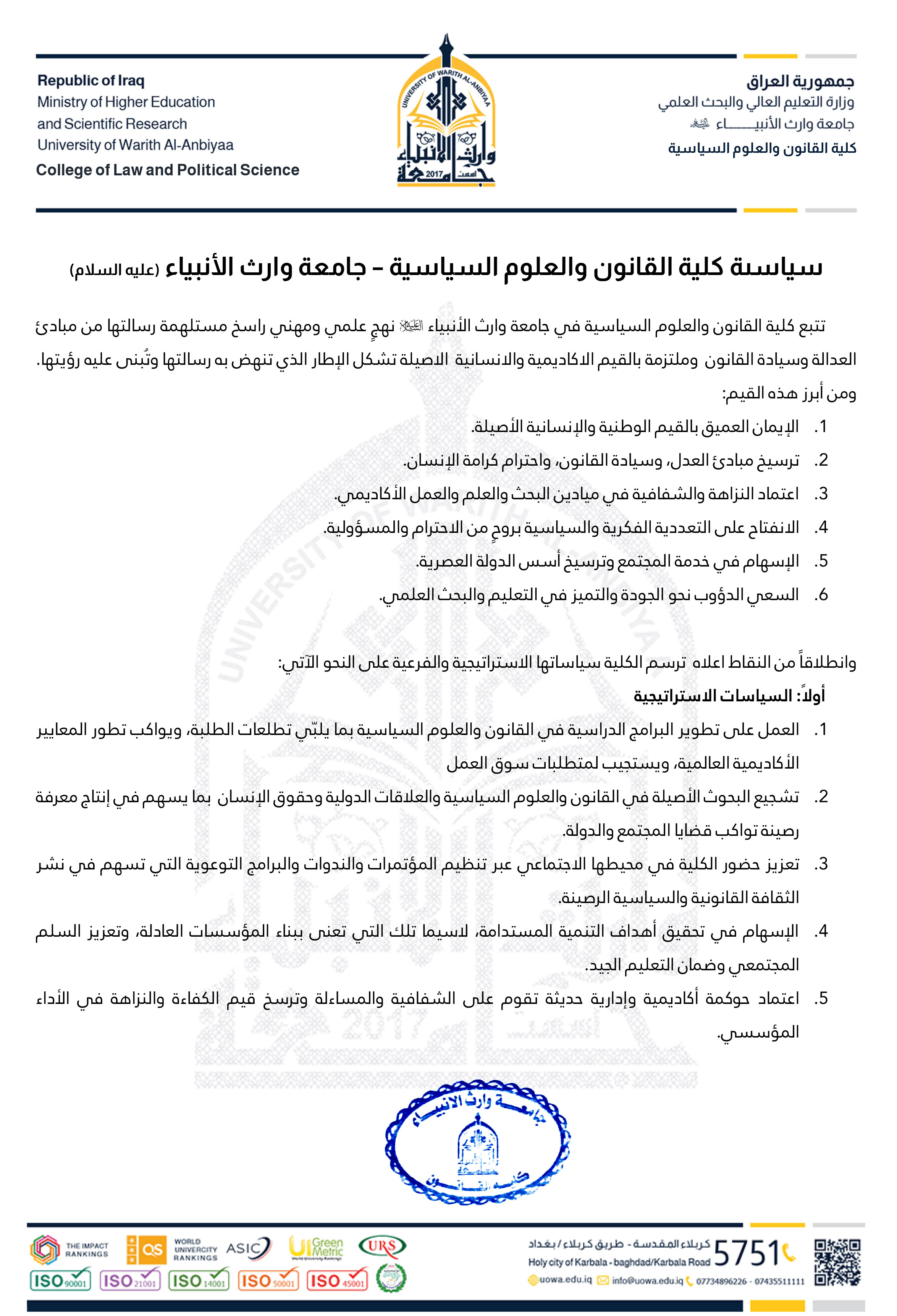 سياسىة كلية القانون والعلوم السياسية – جامعة وارث الأنبياء (عليه السلام)