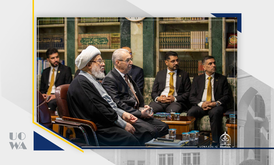 جاء ذلك خلال استقبال سماحته لرئيس الجامعة الأستاذ الدكتور إبراهيم سعيد الحياوي وأعضاء مجلس الجامعة، اليوم السبت، حيث اطّلع على أبرز المشاريع والإنجازات التي حققتها الجامعة، ومن بينها حصولها على المركز الثاني ضمن الجامعات المتميزة في جوائز يوم العلم العراقي لعام 2025، والذي يُعد إنجازاً وطنياً يُضاف إلى سجل الجامعة الأكاديمي.