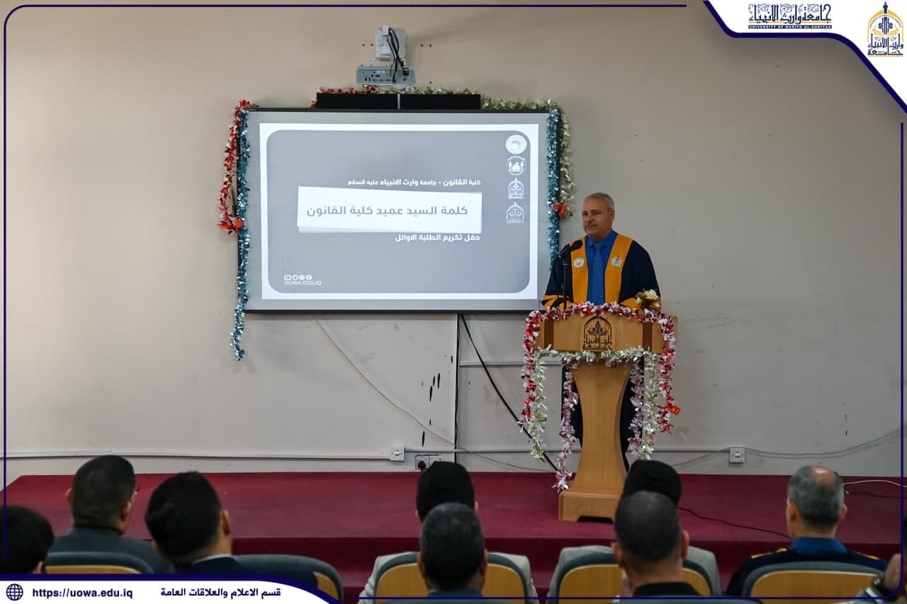 احتفت عمادة كلية القانون في جامعة وارث الانبياء (عليه السلام) بطلبتها الأوائل ولكلا الدراستين الصباحية والمسائية، وذلك عبر تقديم شهادات الشكر والتقدير و الهدايا التشجيعية تثميناً لجدهم واجتهادهم ولتحفيز بقية الطلبة للمزيد من الاجتهاد العلمي .