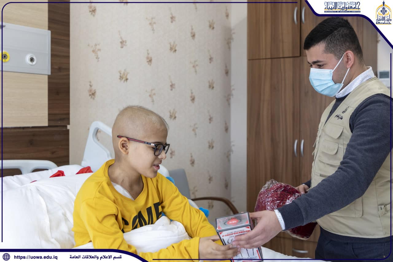 ضمن المشاريع الخيرية المستمرة التي يعمل بها الفريق وبدعم ورعاية رئاسة الجامعة زار فريق عطاء طلبة جامعة وارث الأنبياء (عليه السلام ) مؤسسة وارث للأمراض السرطانية التابعة للأمانة العامة للعتبة الحسينية المقدسة ومركز الأورام السرطانية في مدينة الامام الحسين ( عليه السلام ) الطبية في كربلاء المقدسة لتقديم الدعم المعنوي للأطفال المرضى من هدايا والعاب ومستلزمات.