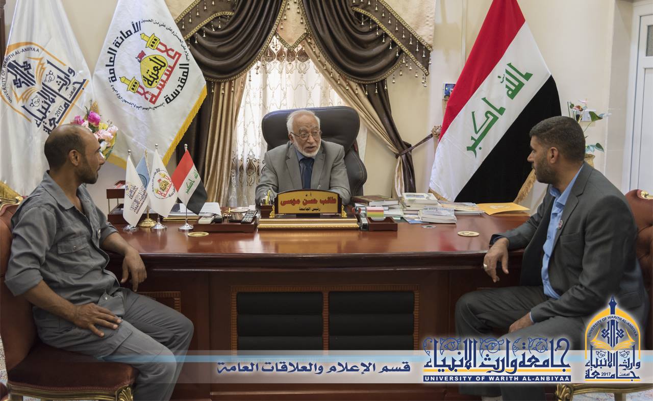 إيمانا منها بالنهج المحمدي العلوي ولما لاحظه رئيس الجامعة من خلال جولاته في الجامعة والإطلاع ميدانيا على كيفية أداء الواجب فإن ماشاهده على علي جاسم عبيد موظف خدمات من همة عالية في أدائه العمل فمرة يعمل في الزراعة وباتقان ومرة في النجارة وباتقان وأخرى بالخدمات الأخرى الصعبة ومن دون أن يعترض وكأنما يعمل لبيته أن مثل هذا العامل بالرغم من موقع عمله البسيط فأن رئاسة الجامعة تعتز به وقرر رئيس الجامعة اد طالب حسن موسى تكريمه في مكتبه وأمام رئيسه وزملائه متمنيا له الموفقية