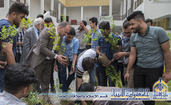 غرس شتلات الاشجار في حدائق جامعة وارث الانبياء عليه السلام لتنمية القيم البيئية
