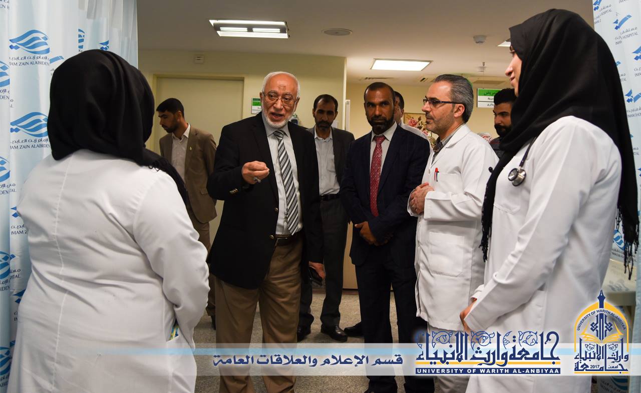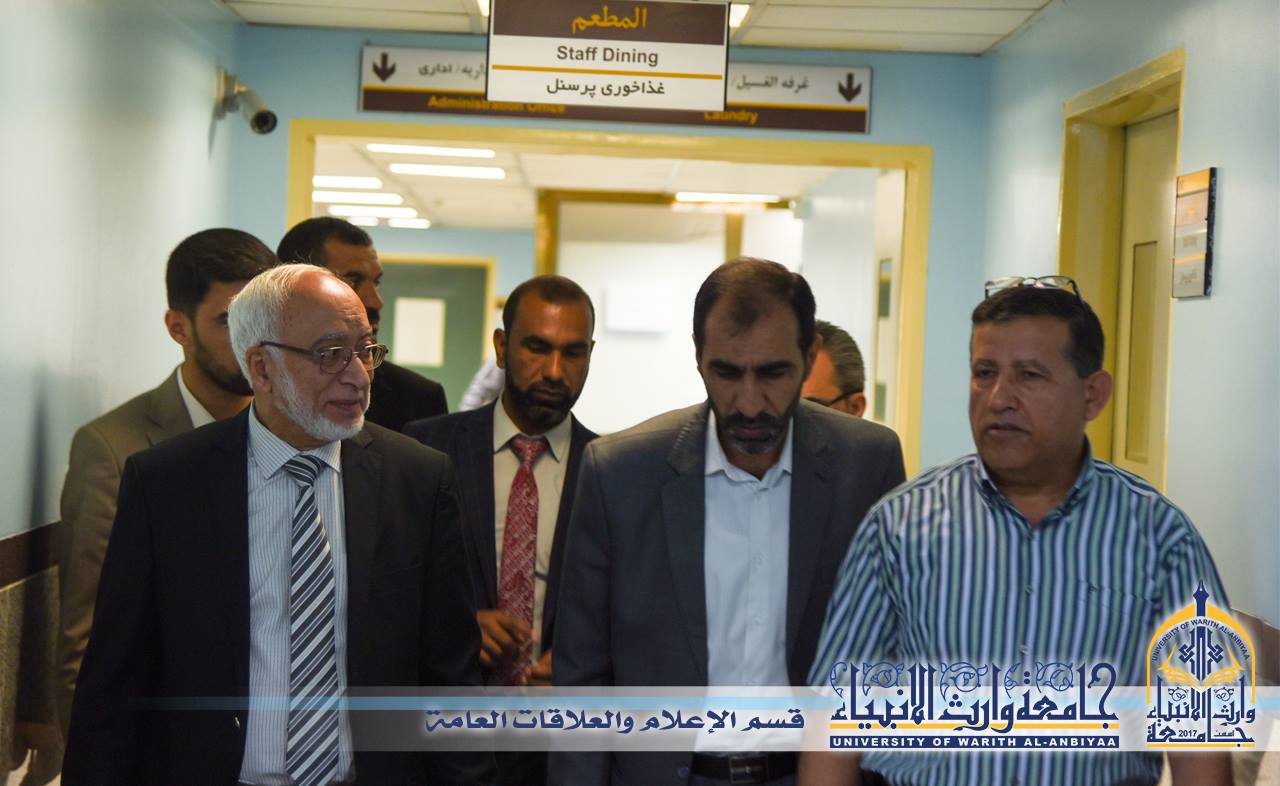 زار السيد رئيس جامعة وارث الأنبياء وعميد كلية التمريض مستشفى الامام زين العابدين(عليه السلام) التابعة للعتبة الحسينية المقدسة لفتح افاق التعاون لقرب موعد افتتاح كلية الطب في الجامعة وقال الأستاذ الدكتور طالب حسن موسى رئيس الجامعة أن الزيارة جاءت للوقوف على الحالة الواقعية للمستشفى دعما لهدف جامعتنا في افتتاح كلية الطب الذي يقع ضمن متطلباته وجود مستشفى تعليمي.