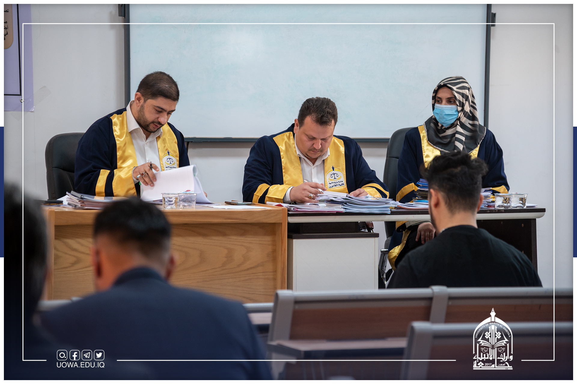 بالصور.. عمادة كلية القانون في جامعة وارث الانبياء (عليه السلام) تناقش بحوث تخرج طلبة المرحلة الرابعة، بحضور لجنة علمية مشكلة من قبل عمادة الكلية للإشراف على المناقشة.