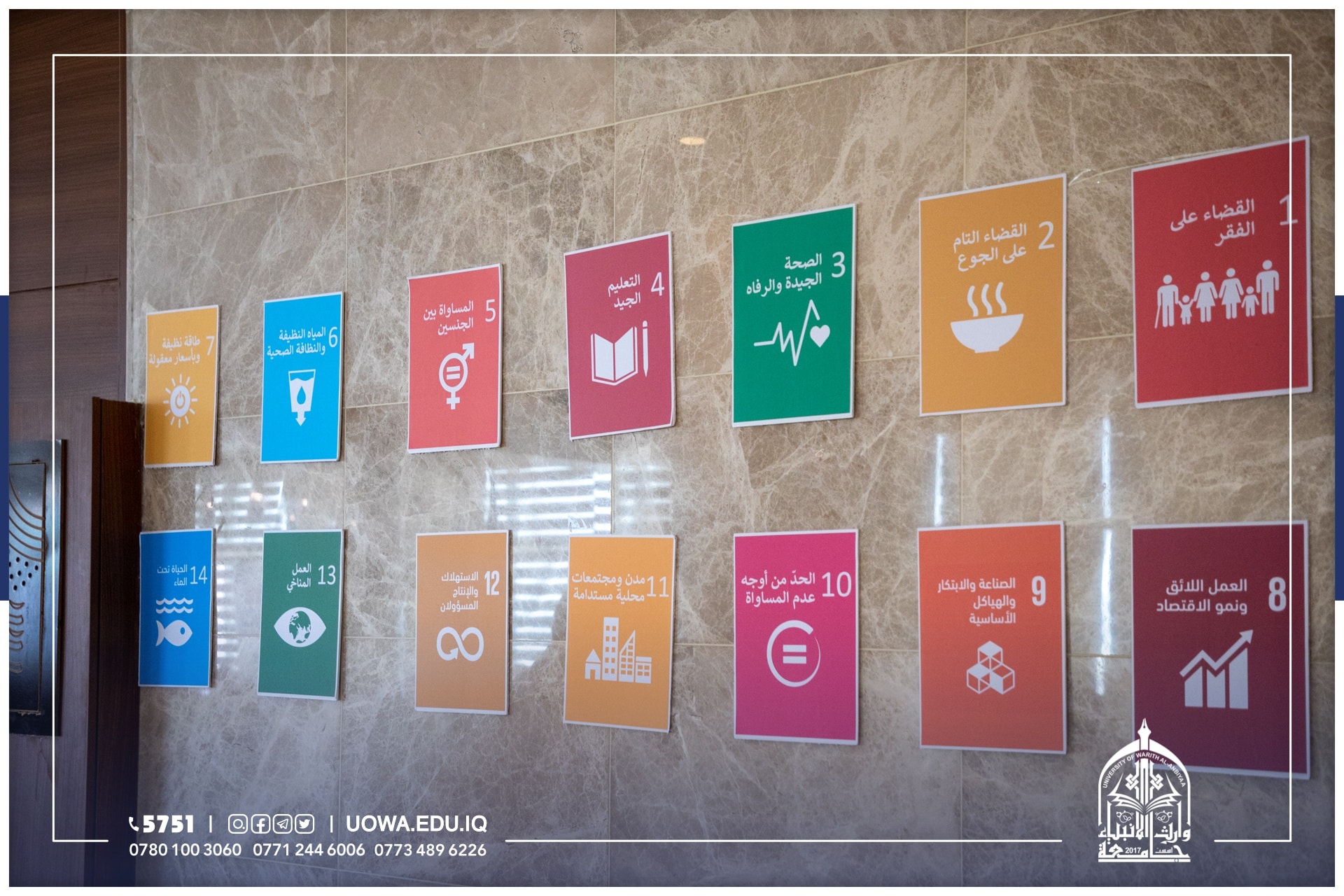 شارك طلبة جامعة وارث الانبياء(عليه السلام) بحضور المساعد العلمي الاستاذ الدكتور عباس الدعمي ومحافظ كربلاء المهندس نصيف جاسم الخطابي، ورئيس جامعة كربلاء الاستاذ الدكتور باسم السعيدي، في "المؤتمر الختامي لعرض مبادرات الشباب في التنمية المستدامة" الذي اقامه البرنامج الانمائي للامم المتحدة.