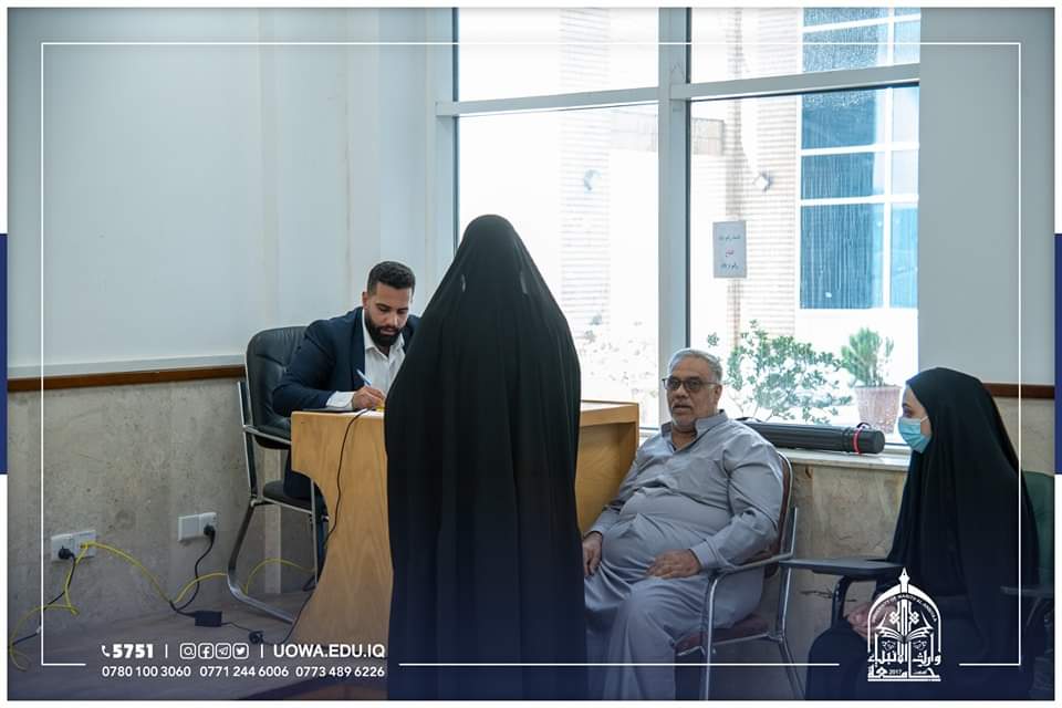 جانب من استقبال فريق التسجيل في جامعة وارث الانبياء(عليه السلام) للطلبة الاعزاء واولياء امورهم الكرام للاجابة عن استفساراتهم ومساعدتهم في انجاز اولى خطوات التقديم ،وهي انشاء حساب الطالب وملء البيانات وتفعيل القنوات الخاصة.