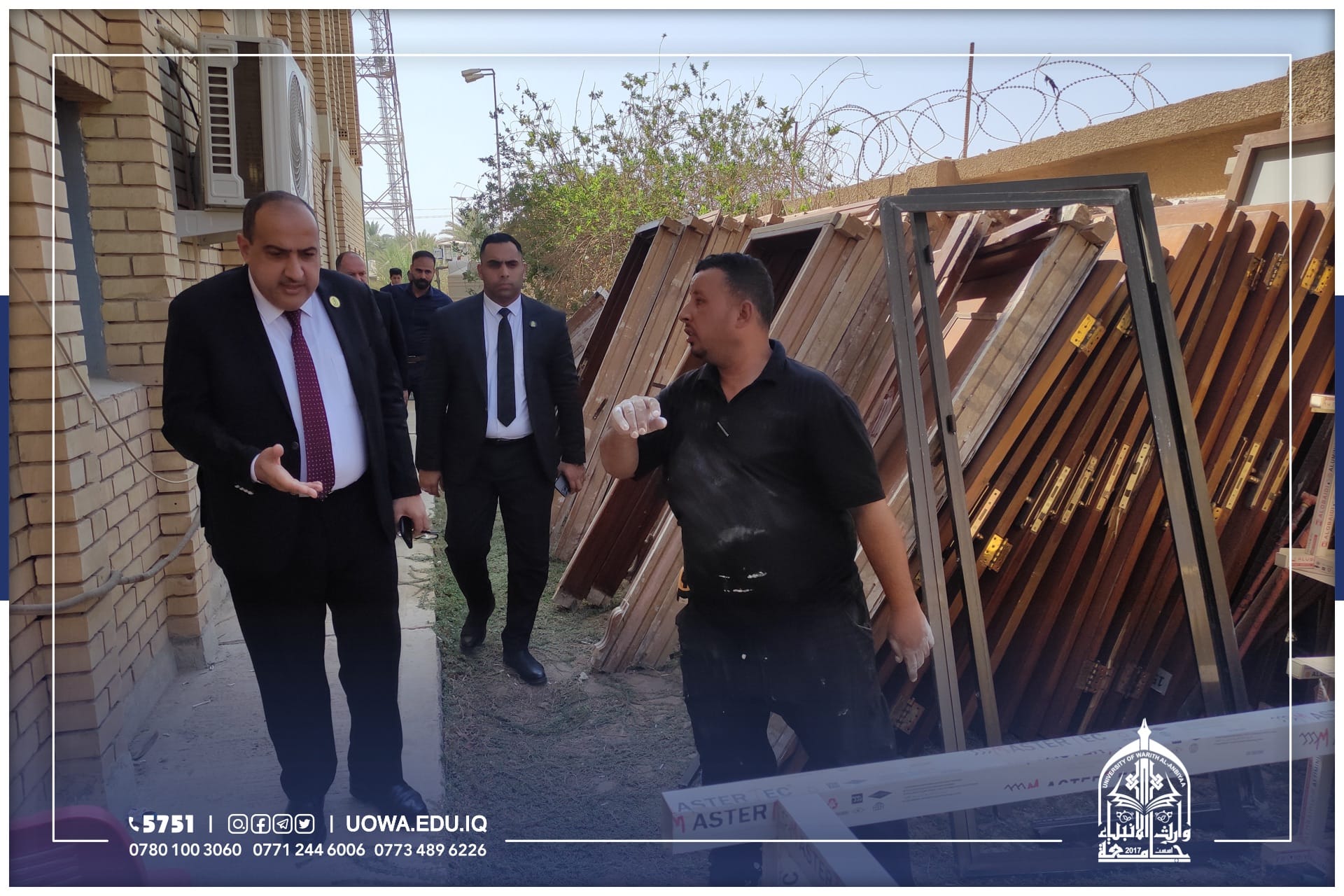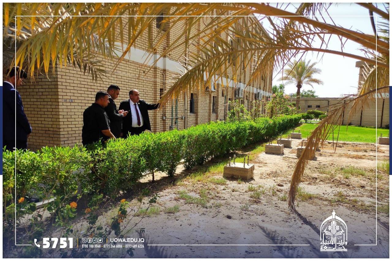 للوقوف على اهم الاستعدادت للعام الدراسي القادم، جانب من الجولة التفقدية لرئيس جامعة وارث الأنبياء (عليه السلام) الاستاذ الدكتور أبراهيم سعيد الحياوي برفقة بعض روساء الاقسام الفنية والإدارية، في أروقة ومباني الجامعة للوقوف على أحتياجاتها وأستعدادتها، اضافة إلى تهيئة مساحات خضراء وواجهات عمرانية جديدة، تحضيرا للعام الدراسي الجديد.