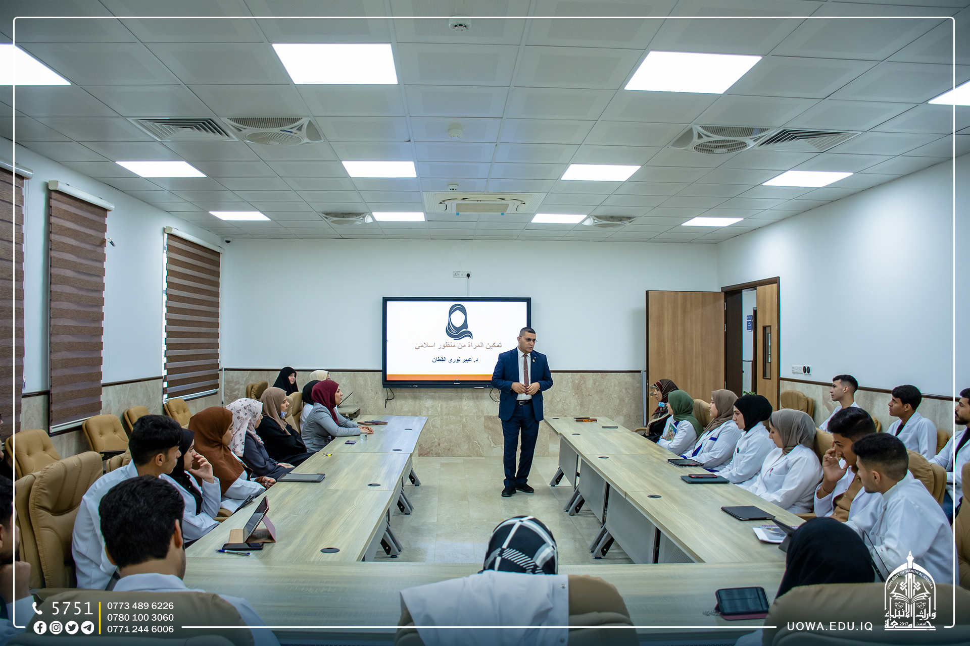 ندوة علمية يقيمها قسم الشؤون العلمية /وحدة تمكين المرأة بالتعاون مع كلية الطب بعنوان(تمكين المرأة من منظور اسلامي) قدمها م.م صباح الجبوري والدكتورة عبير نوري قحطان