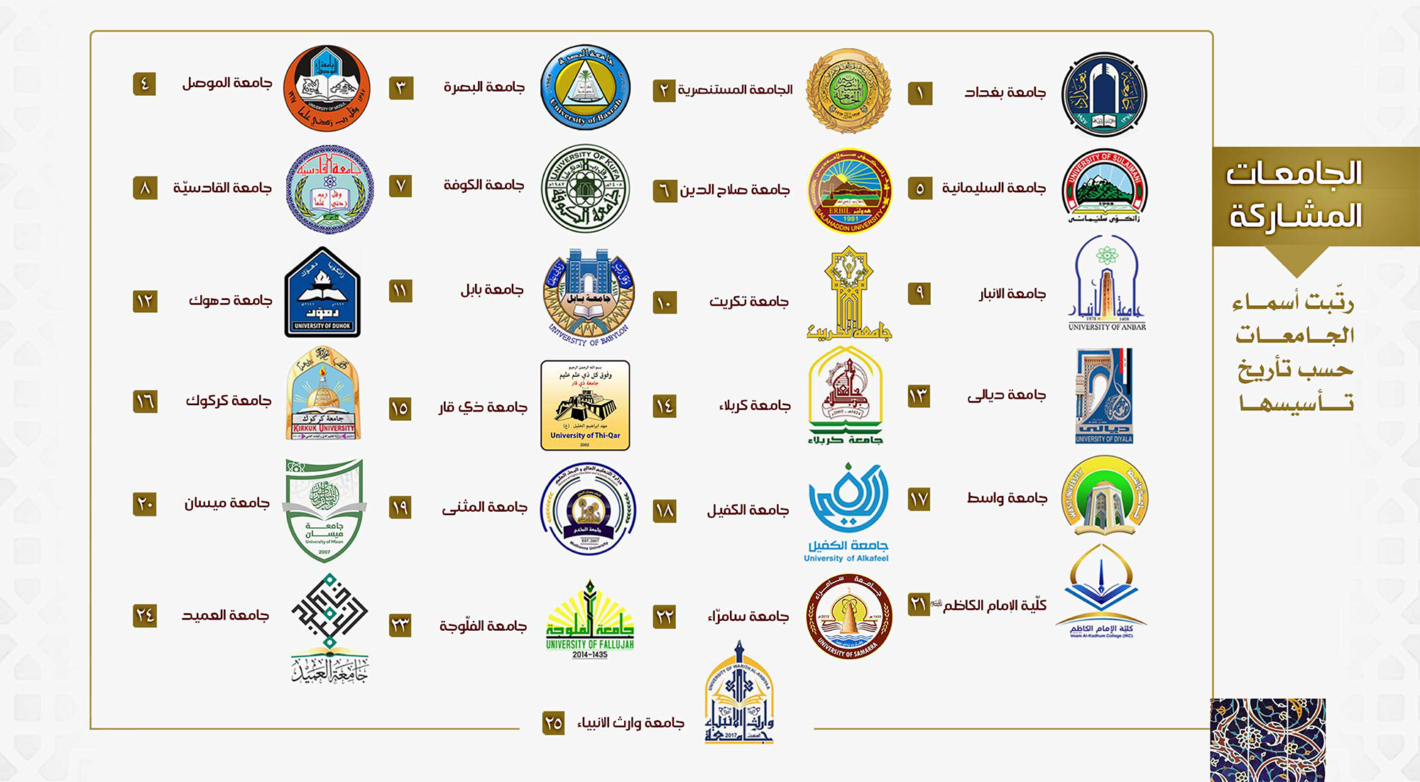 بالتعاون مع جامعة الكوفة- كلية الفقه وجامعة وارث الانبياء (عليه السلام) و(23) جامعة عراقية أخرى