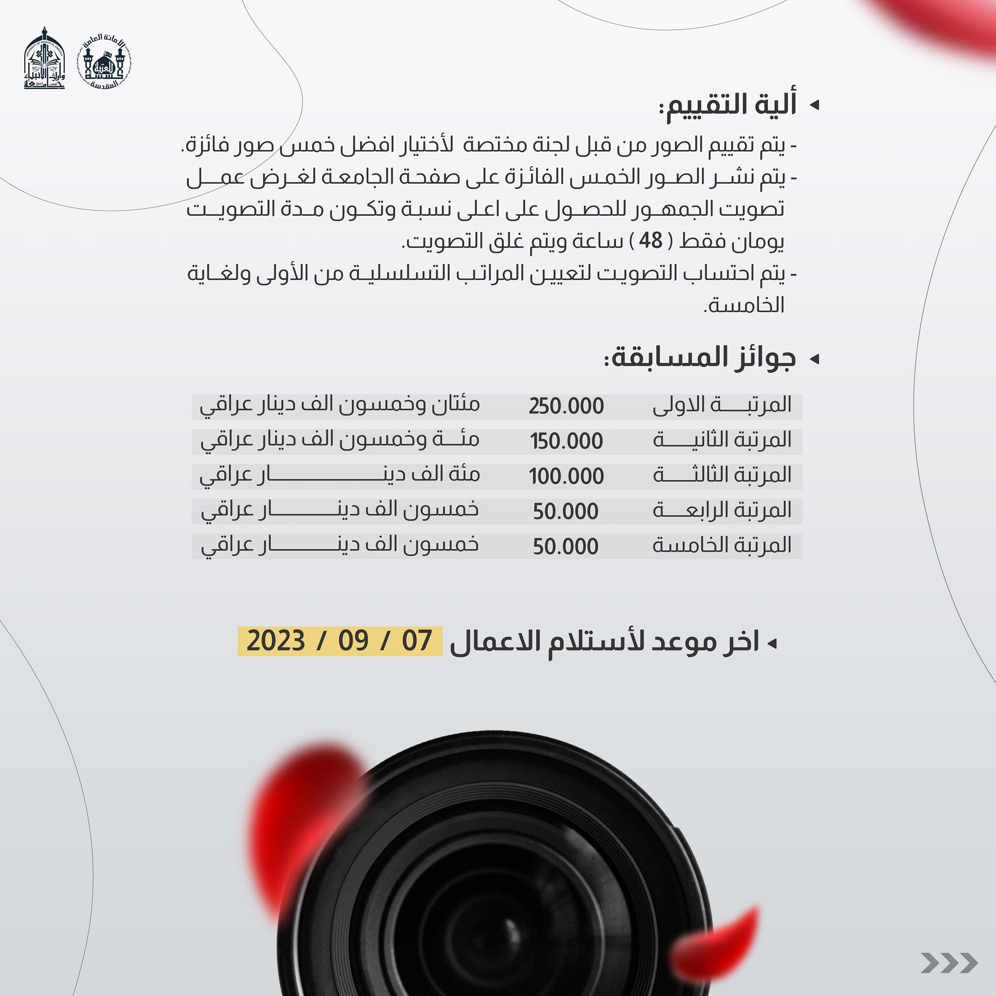 علماً ان اخر موعد لاستلام الصور، الخميس 7/9/2023