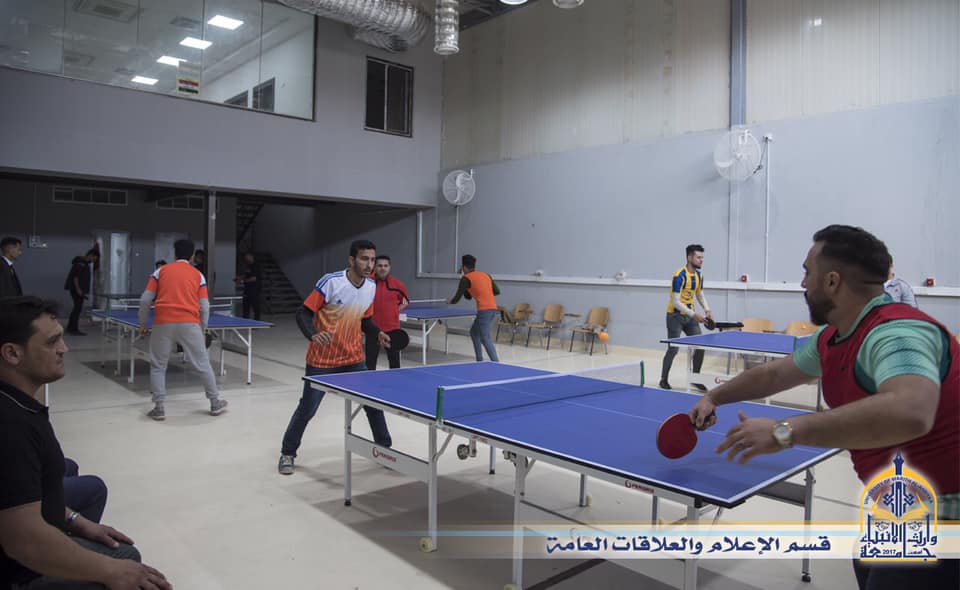 برعاية السيد رئيس جامعة وارث الانبياء التابعةً للعتبة الحسينية المقدسة اقام قسم النشاطات الطلابية بطولة الجامعة لتنس الطاولة، وقال م.م. همام عبد العباس رئيس قسم النشاطات الطلابية ان البطولة شملت جميع الكليات وبمشاركة كبيرة من الطلبة وبنظام التسقيط الفردي واضاف ستكون هناك عدة نشاطات خلال السنة للطلبة الاعزاء منها بطولة لخماسي الكره ومهرجان شعري وغيرها