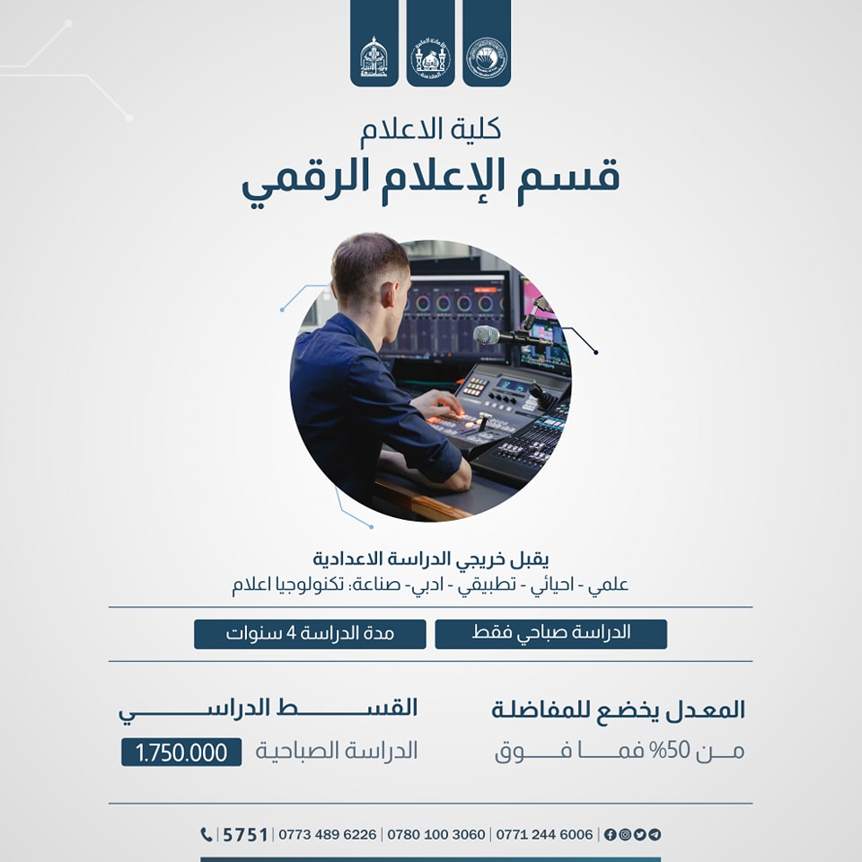 ضمن الكليات والاقسام المستحدثة في جامعة وارث الانبياء(عليه السلام ) #كلية  الإعلام بقسميها: