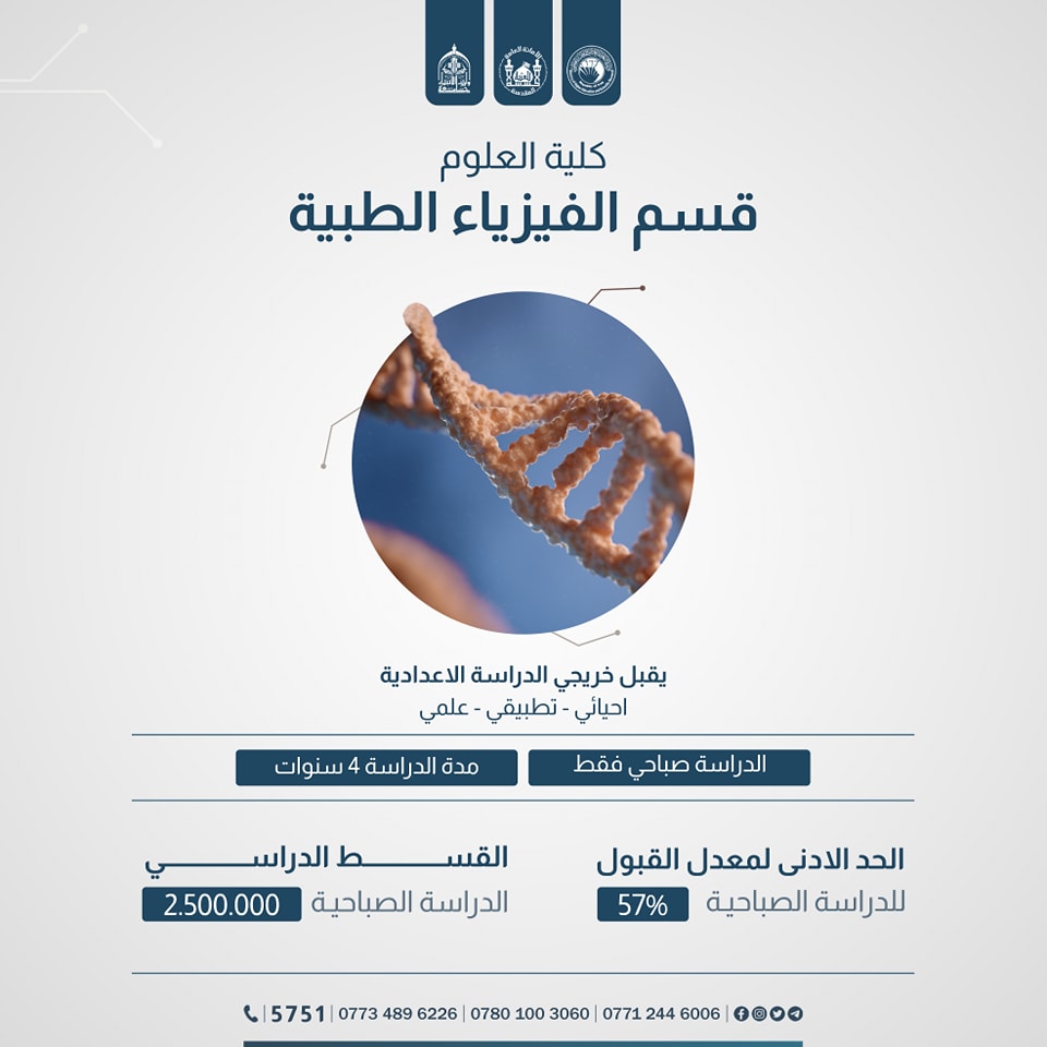 قسم #الفيزياء_الطبية /صباحي فقط