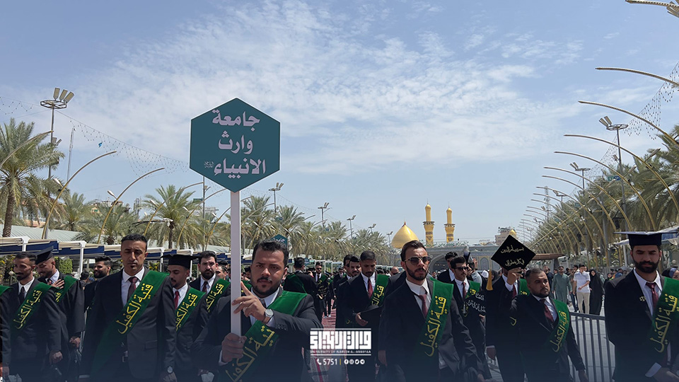 أُعداد من طلبة جامعة وارث الأنبياء (عليه السلام) يشاركون بفخر وحماس في فعاليات الحفل المركزي الرابع لتخرج طلبة الجامعات العراقية.