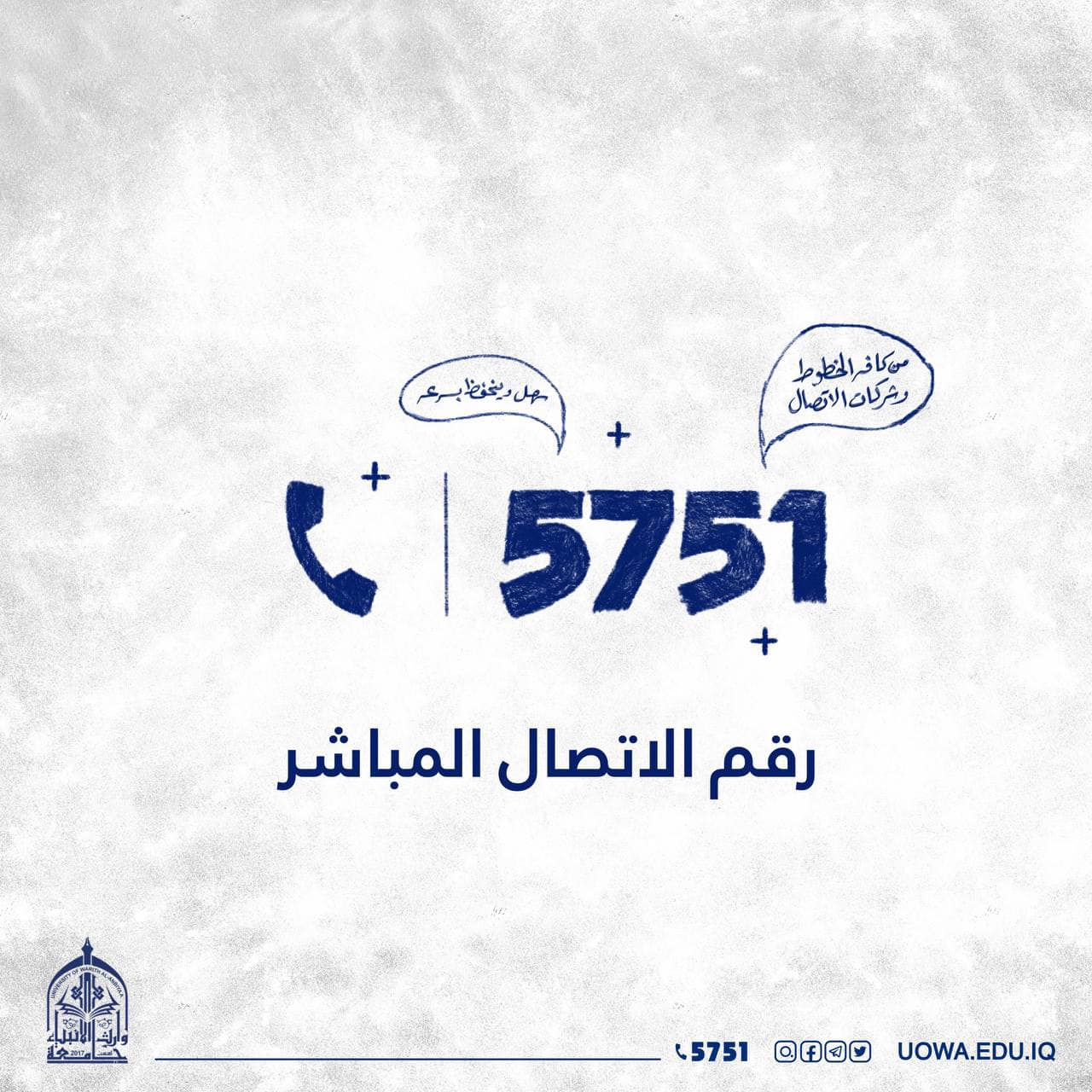 سعيا منها لتوفير كافة التسهيلات أثناء فترة التسجيل والدوام الرسمي، جامعة وارث الانبياء توفر مجموعة من الخطوط المختصرة للاتصال السريع من خلال شركة الاتصالات زين وآسيا.