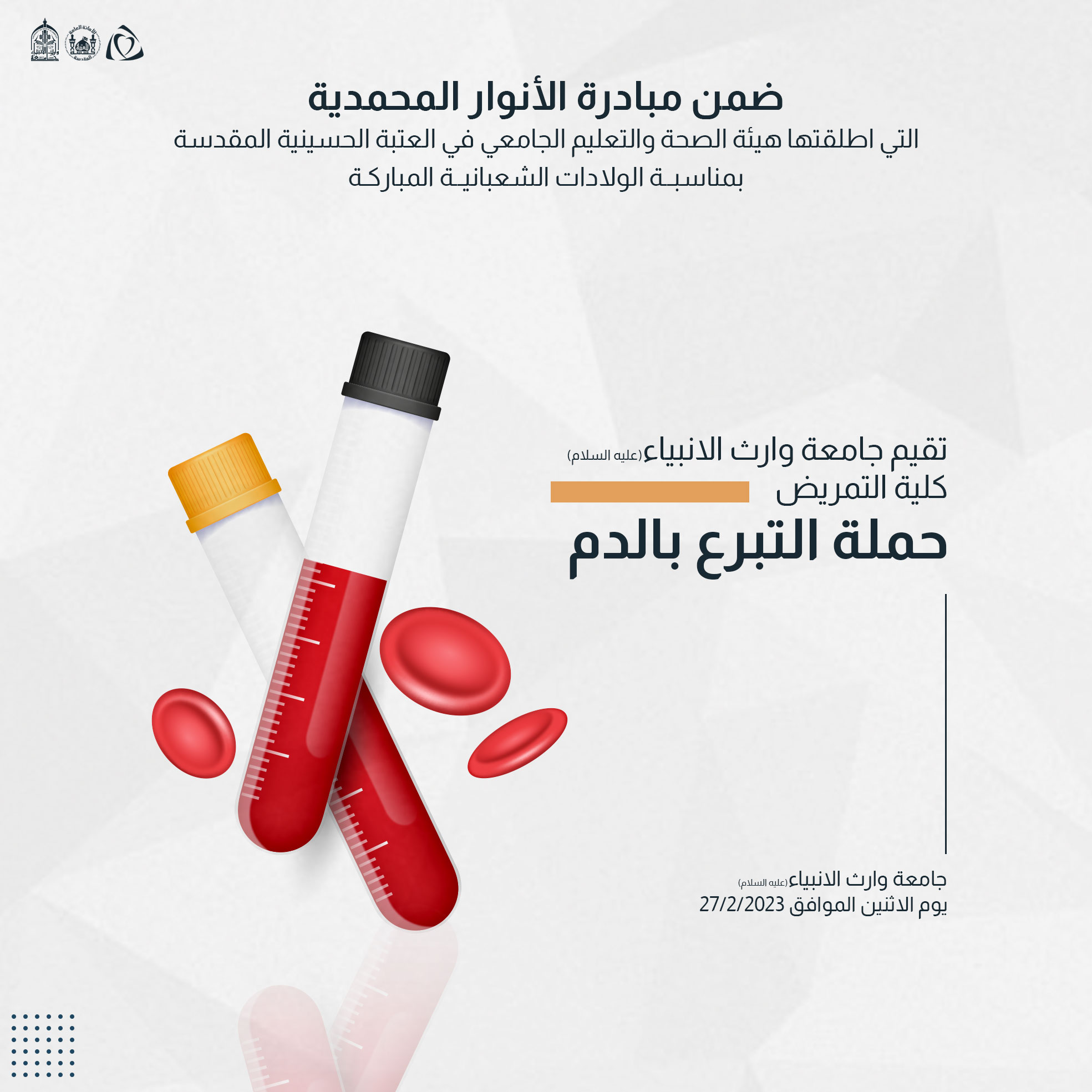 ضمن المبادرة الأكبر التي اطلقتها هيئة الصحة والتعليم الجامعي في العتبة الحسينية المقدسة بمناسبة الولادات الشعبانية المباركة