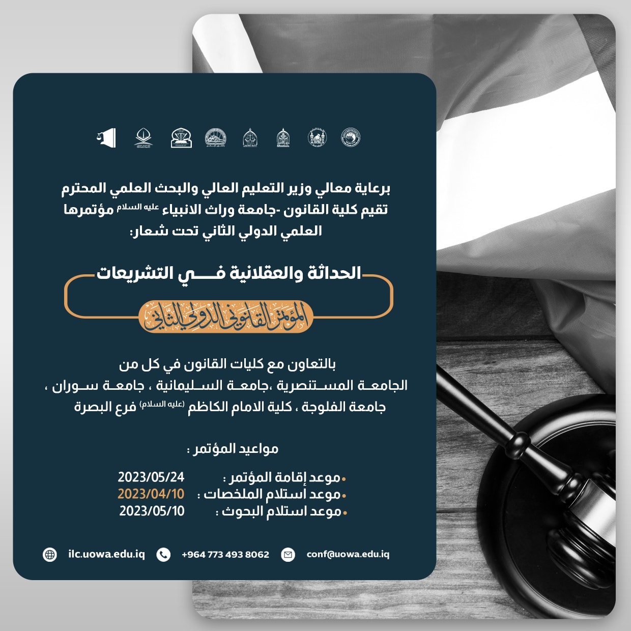 بالتعاون مع جامعة الكوفة- كلية الفقه وجامعة وارث الانبياء (عليه السلام) و(23) جامعة عراقية أخرى