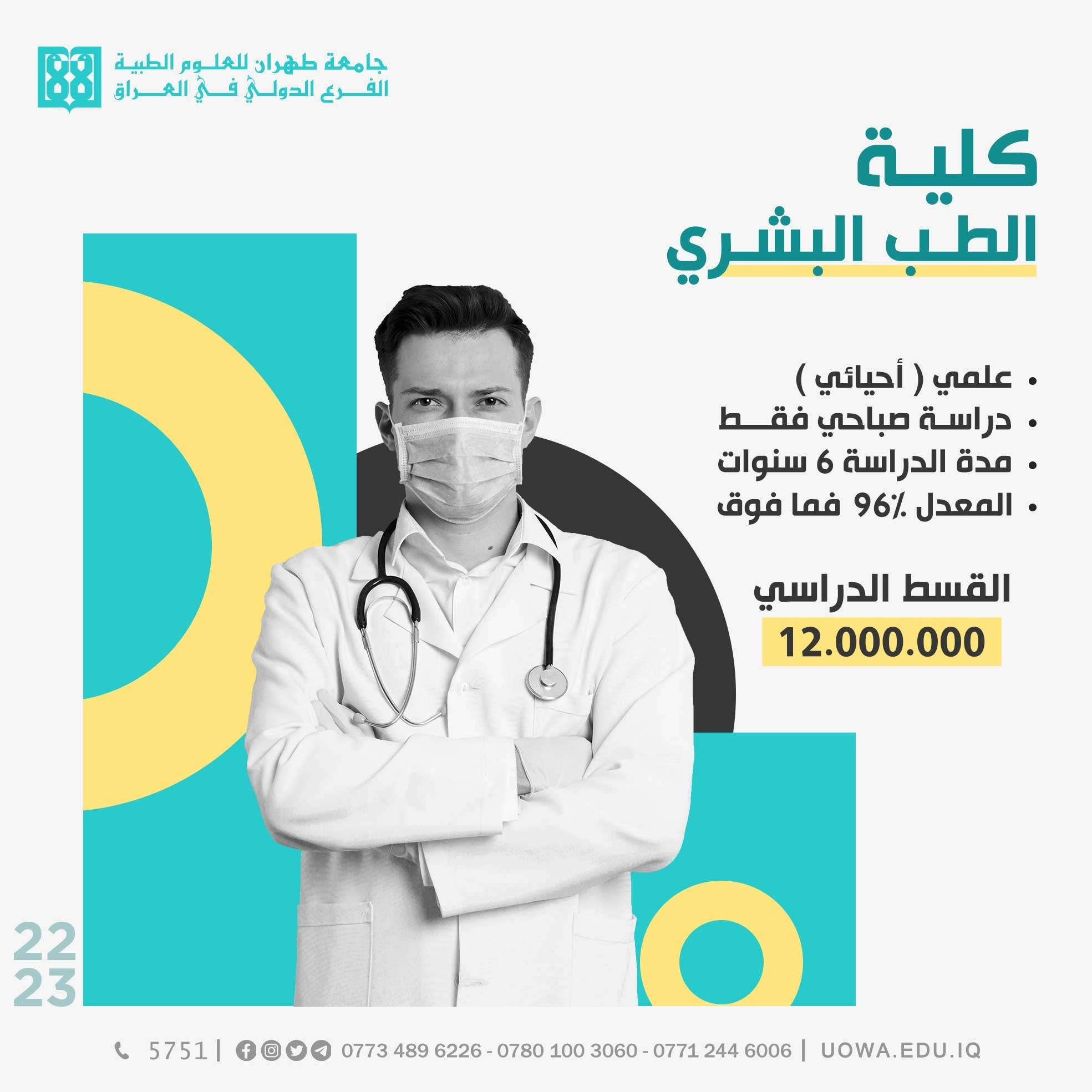 *كلية الطب البشري/ صباحي فقط/ الحد الادنى للتقديم ٩٦فما فوق (احيائي)