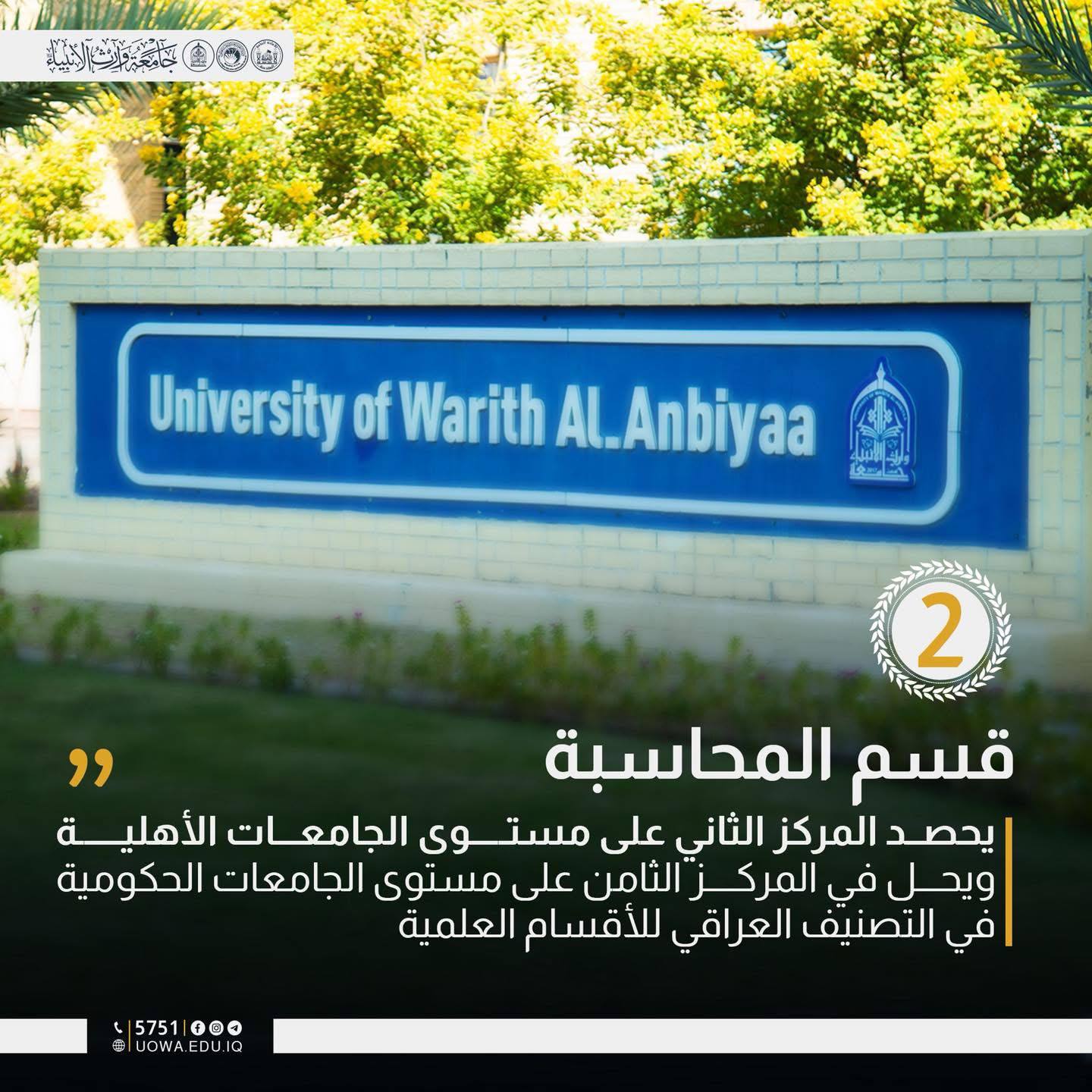 حققت جامعة وارث الانبياء (عليه السلام) انجازا اكاديميا جديدا بحصولها على المرتبة الثانية على مستوى الجامعات الاهلية في العراق للعام الثاني على التوالي وذلك وفق نتائج التصنيف العراقي للجامعات للعام 2025 الذي اعلنته وزارة التعليم العالي والبحث العلمي.