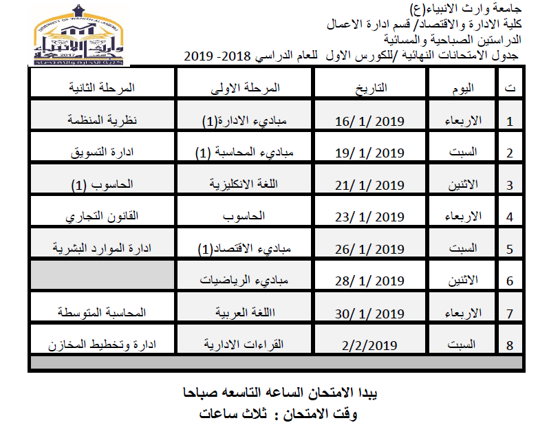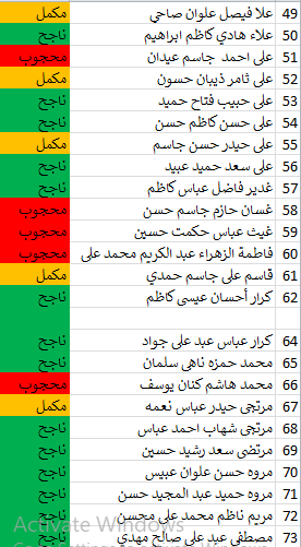 جدول اسماء الطلبة