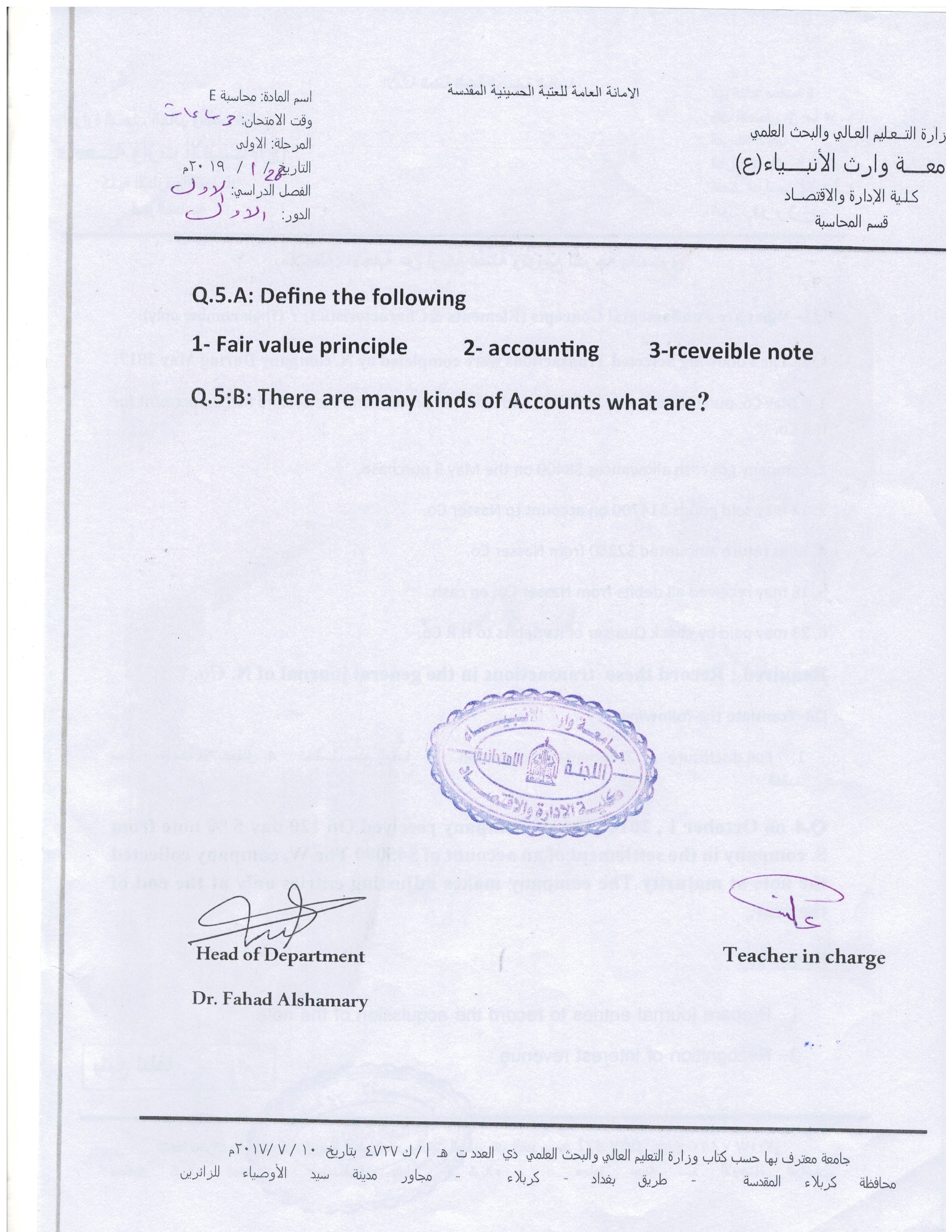 قامة عمادة الكلية ومجلسها الممثل بالاستاذ الدكتور عامر العطوي ود.نضال المالكي ود.فهد الشمري بتكريم الطلبة الاوائل للدراسة الصباحية والمسائية للمرحلتين الاولى والثانية وللقسمين المحاسبة وادارة اعمال في يوم الاحد 3/3/2019 وكذلك تم تكريم افضل طالبة محتشمة لكل قسم وقد حضر مجموعة من السادة التدريسيين والطلبة حفل التكريم