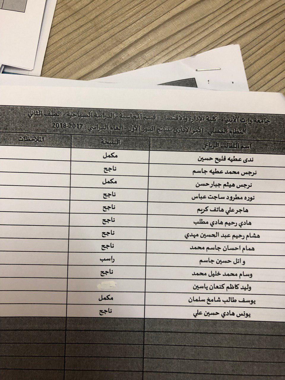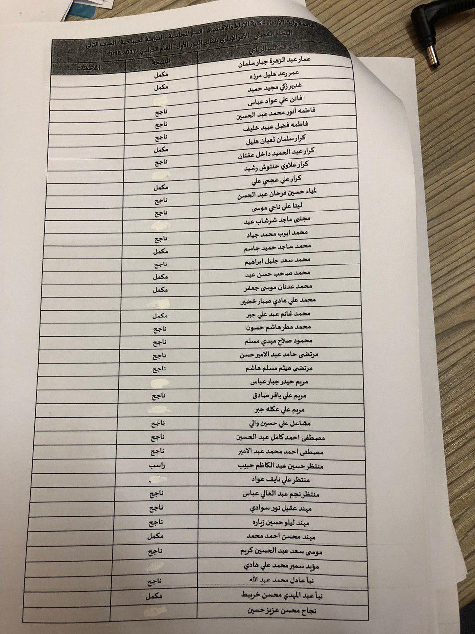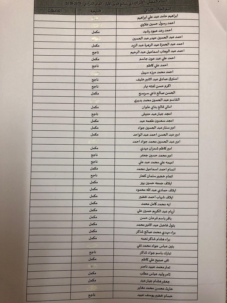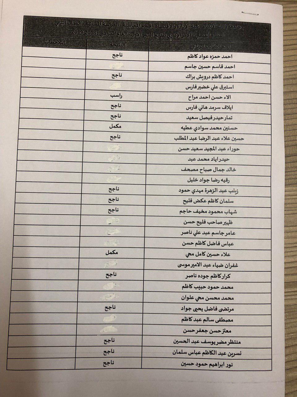 نتائج النهائية للكورس الثاني 2018-2019 / قسم المحاسبة