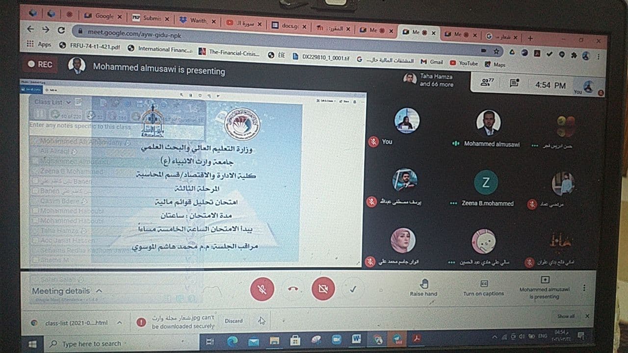 بإشراف مباشر من السيد عميد كلية الادارة والاقتصاد "أ.د.عوادالخالدي" والسادة رؤساء الاقسام (م.د.فهد الشمري/ رئيس قسم ادارة الاعمال و م.د.هبة الله مصطفى/ رئيس قسم المحاسبة)،