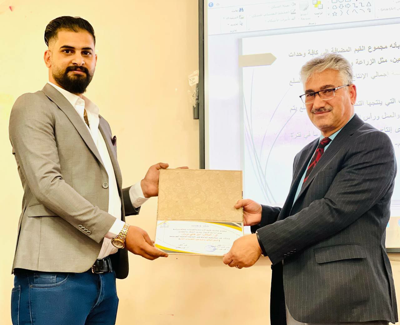 والتي حضرها مجموعة من الاساتذة وطلبة القسم وفي نهاية الندوة تم تكريمهما بشهادة شكر وتقدير من عمادة الكلية ورئاسة القسم على جهودهما المبذولة