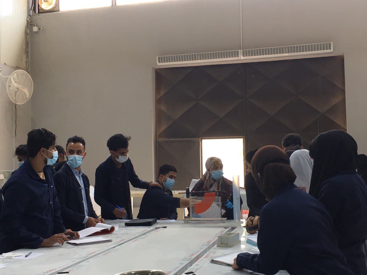 جانب من المحاضرة العملية لمادة ميكانيك الموائع لطلاب المرحلة الثانية