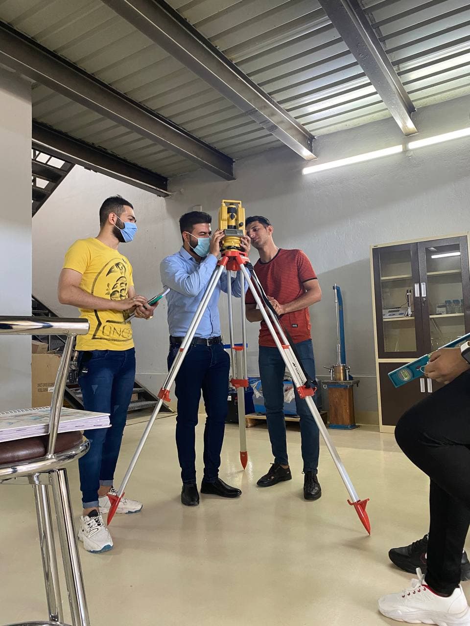 جانب من المحاضرة العملية مادة المساحة الهندسة طلبة قسم الهندسة المدنية المرحلة الثانية