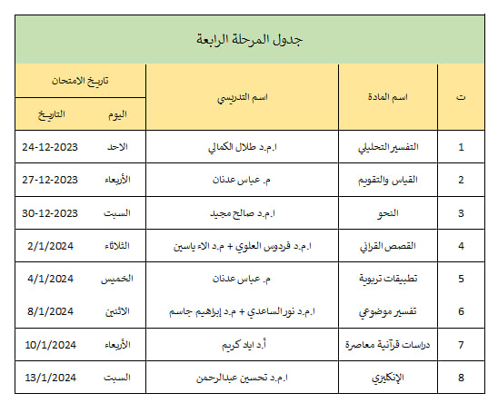 جدول الامتحانات النهائية للفصل الاول من العام الدراسي 2023-2024 قسم علوم القرآن
