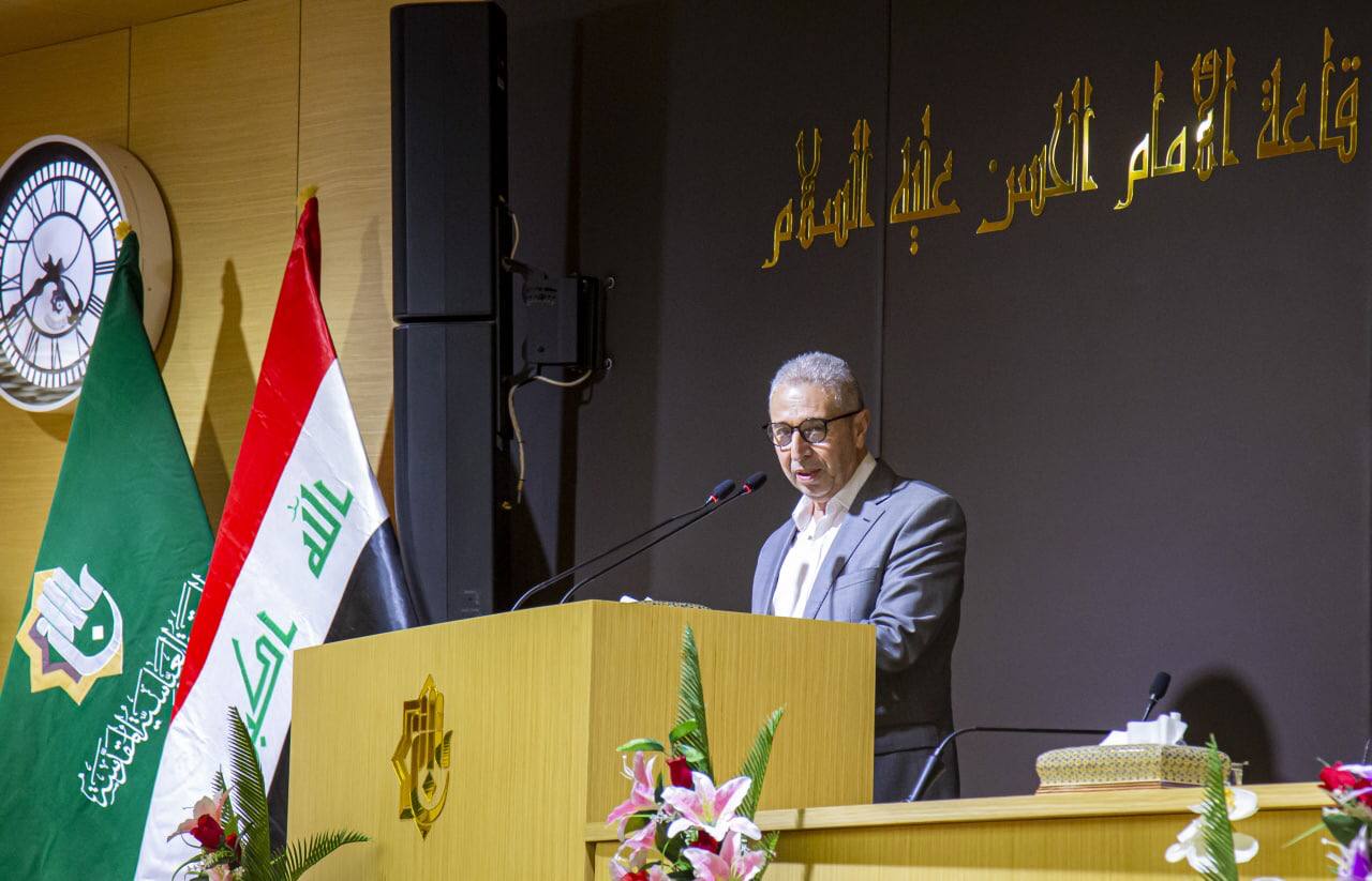 فكلُ الشكرِ والتقديرِ لإدارةِ العتبةِ العباسية المقدسة ولا سيما ادارةُ قسمِ المعارف الإسلامية والإنسانية.... وأقولُ لهم إننا في الجامعاتِ العراقيةِ كافة نشدُ على عضدِكم ونواكبُ خطاكُم في تجسيدِ خطى مدرسةِ أهلِ البيتِ عليهم السلام، وأقولُ أنّه مهما بذلنا من جهدٍ واجتهادٍ خدمةً للإنسانِ سيبقى العقلُ والضميرُ وصوتُ الحقِ يستصرخُنا لتقديمِ المزيدِ خدمةً للدينِ والانسانِ والوطنِ.