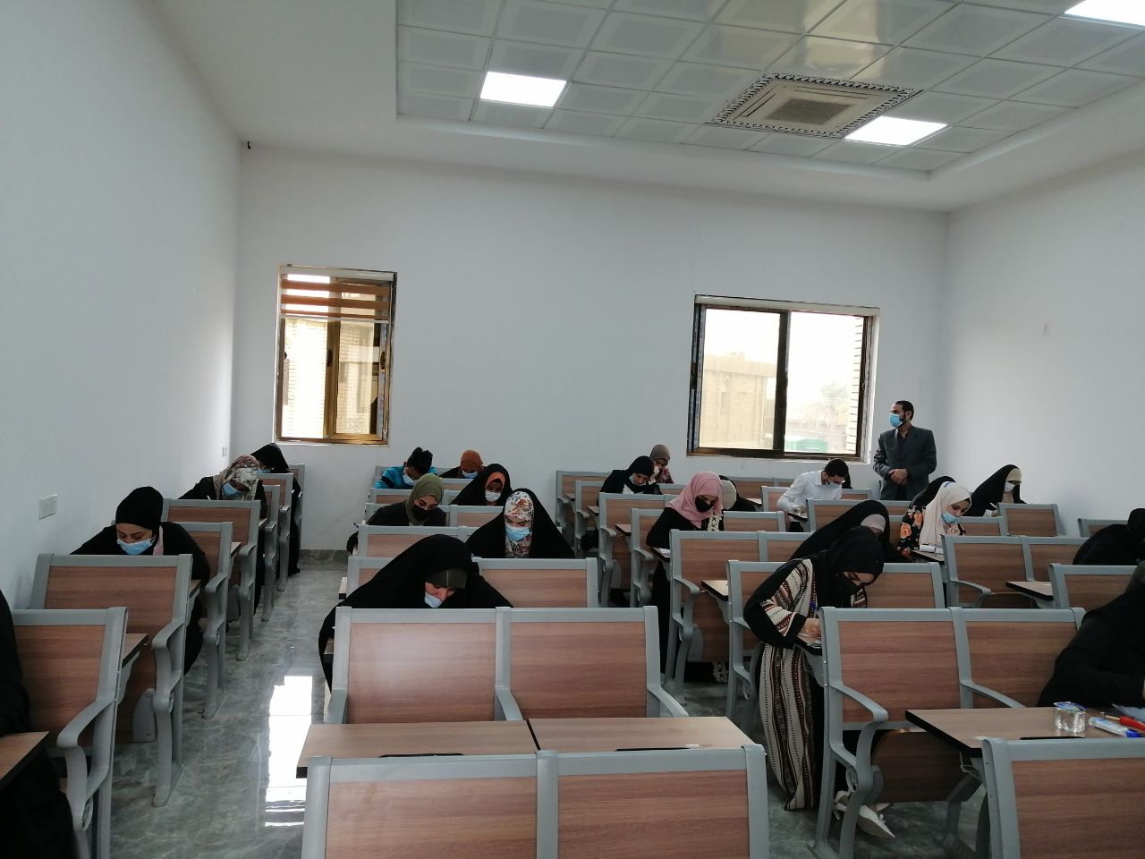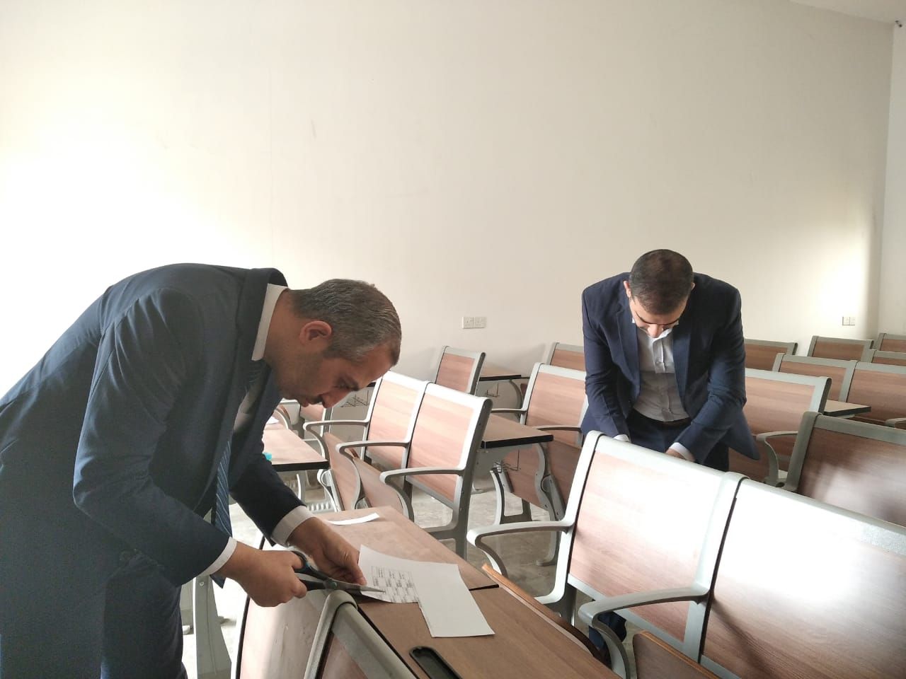 تقوم كلية العلوم الإسلامية بتهيأة القاعات الدراسية استعداداً لاداء طلبتها للامتحانات الحضورية النهائية للفصل الاول
