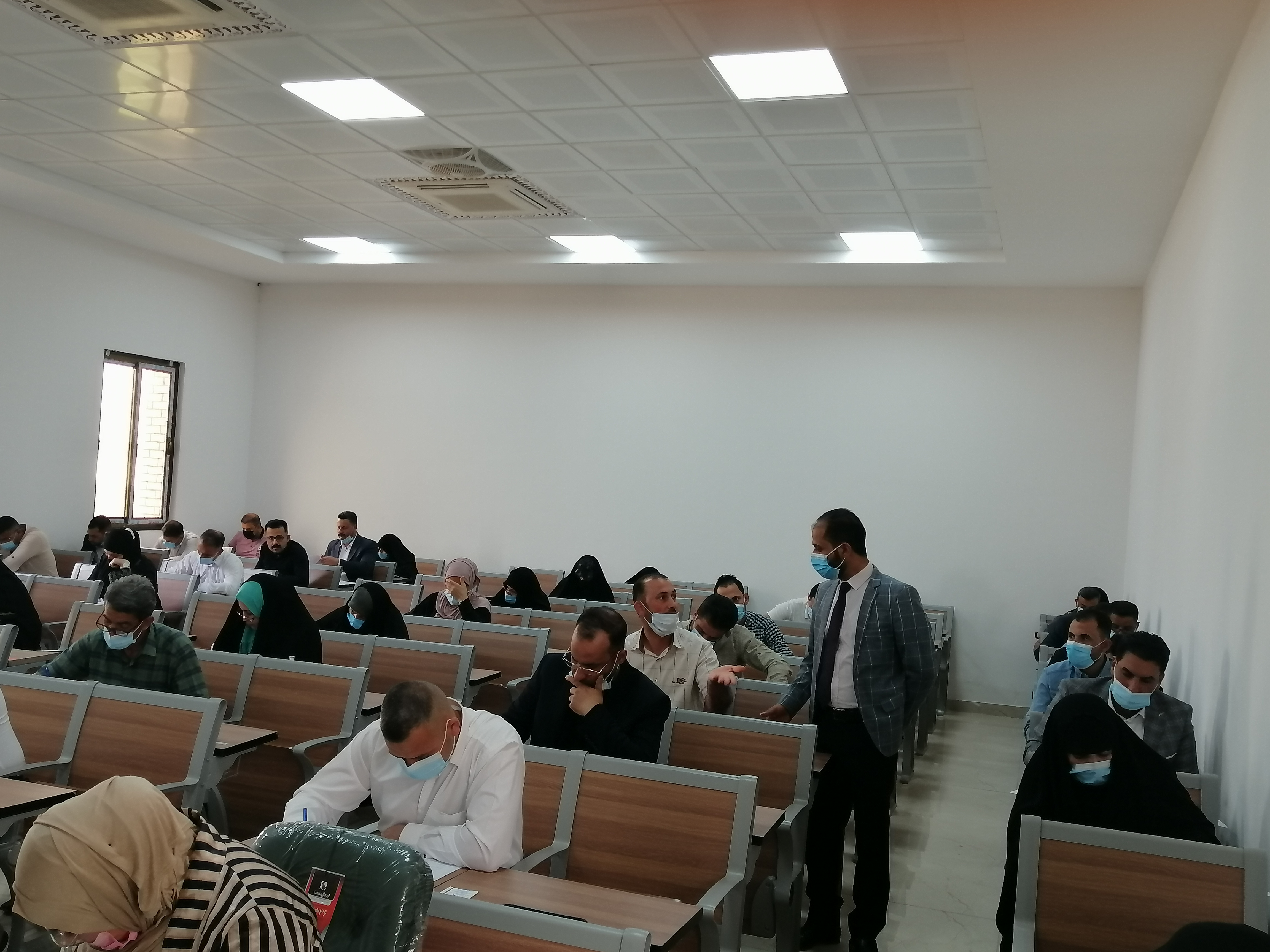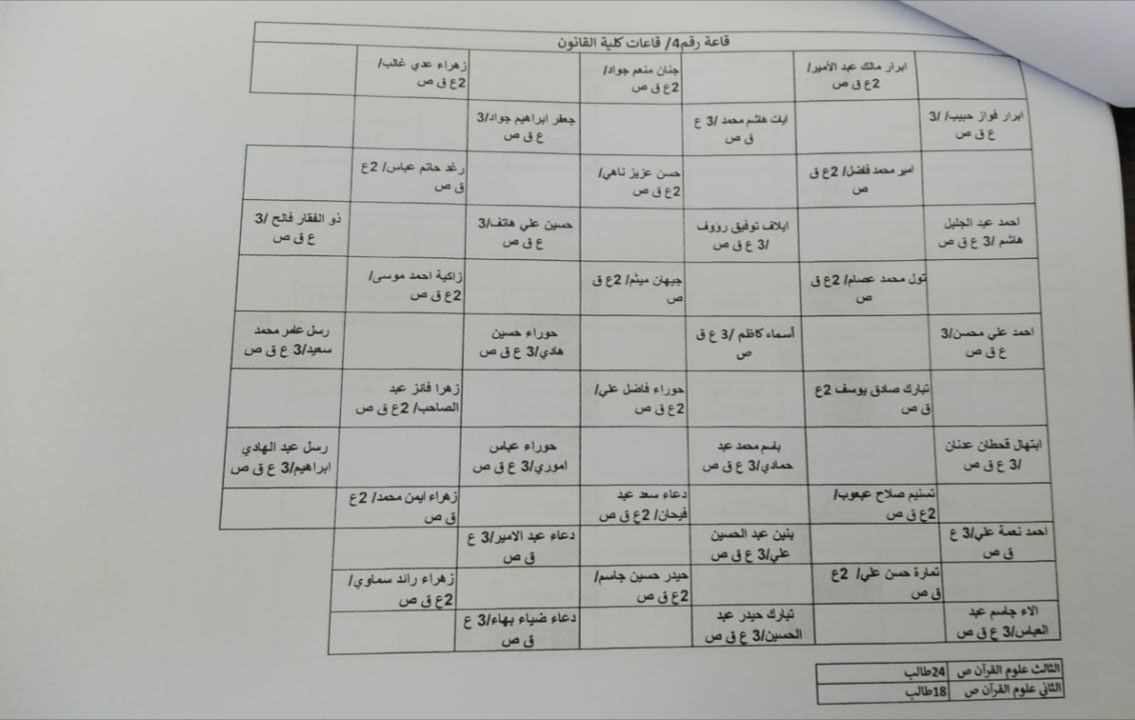 توزيع الطلبة على القاعات الدراسية استعداداً لاداء الامتحانات الحضورية النهائية للفصل الدراسي الاول لطلبة كلية العلوم الإسلامية