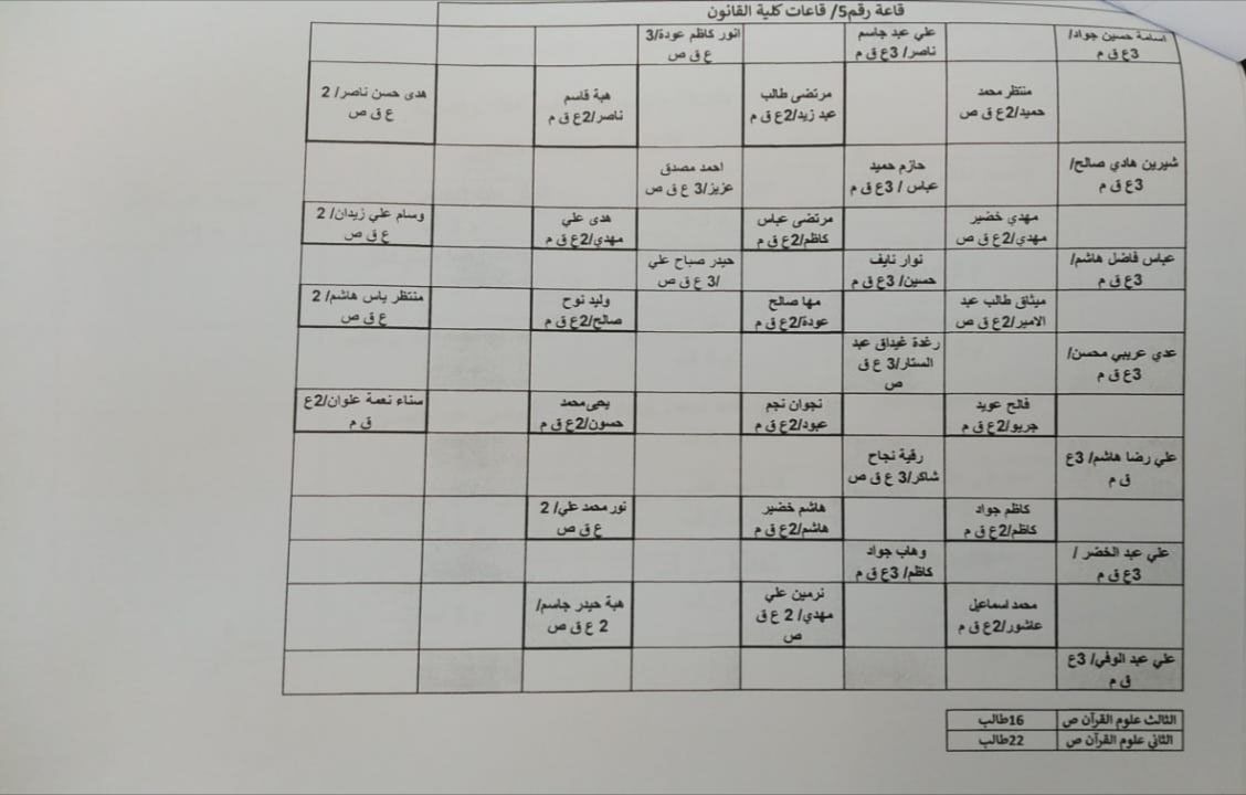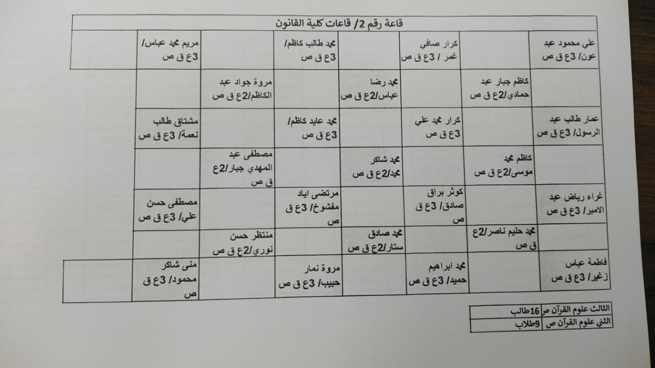 توزيع الطلبة على القاعات الدراسية استعداداً لاداء الامتحانات الحضورية النهائية للفصل الدراسي الاول لطلبة كلية العلوم الإسلامية