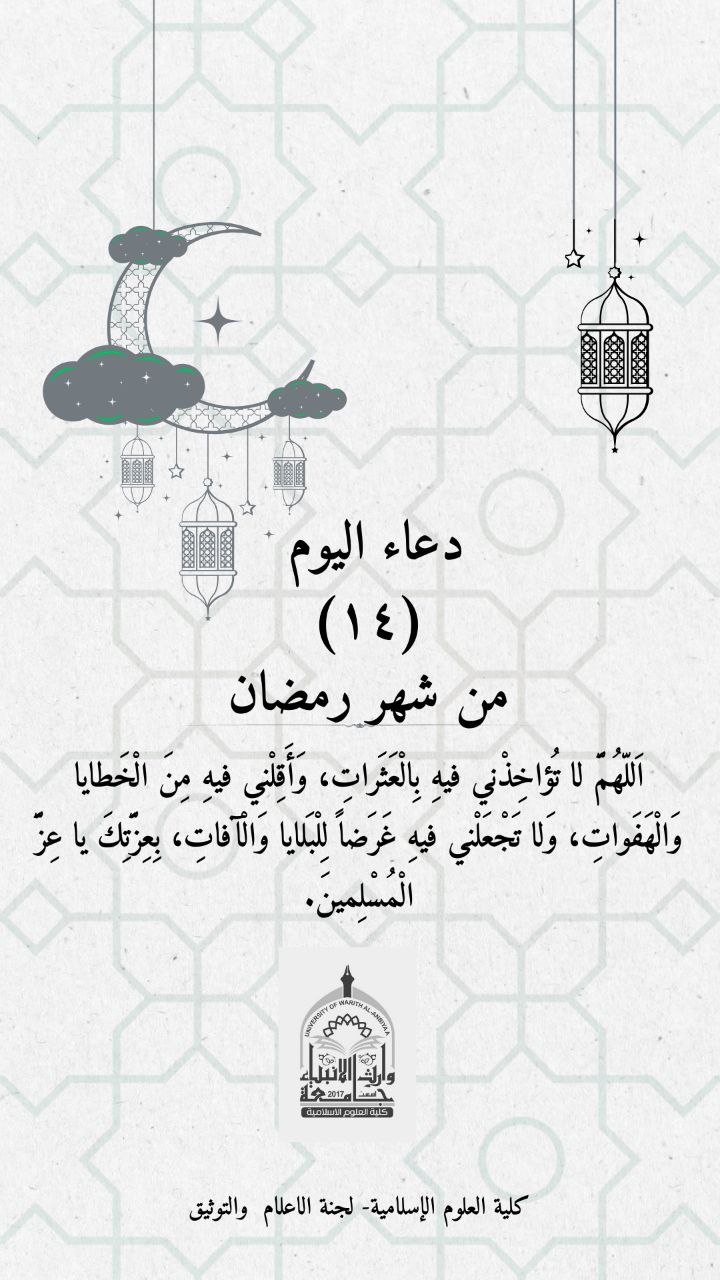 دعاء اليوم الرابع عشر من شهر رمضان المبارك