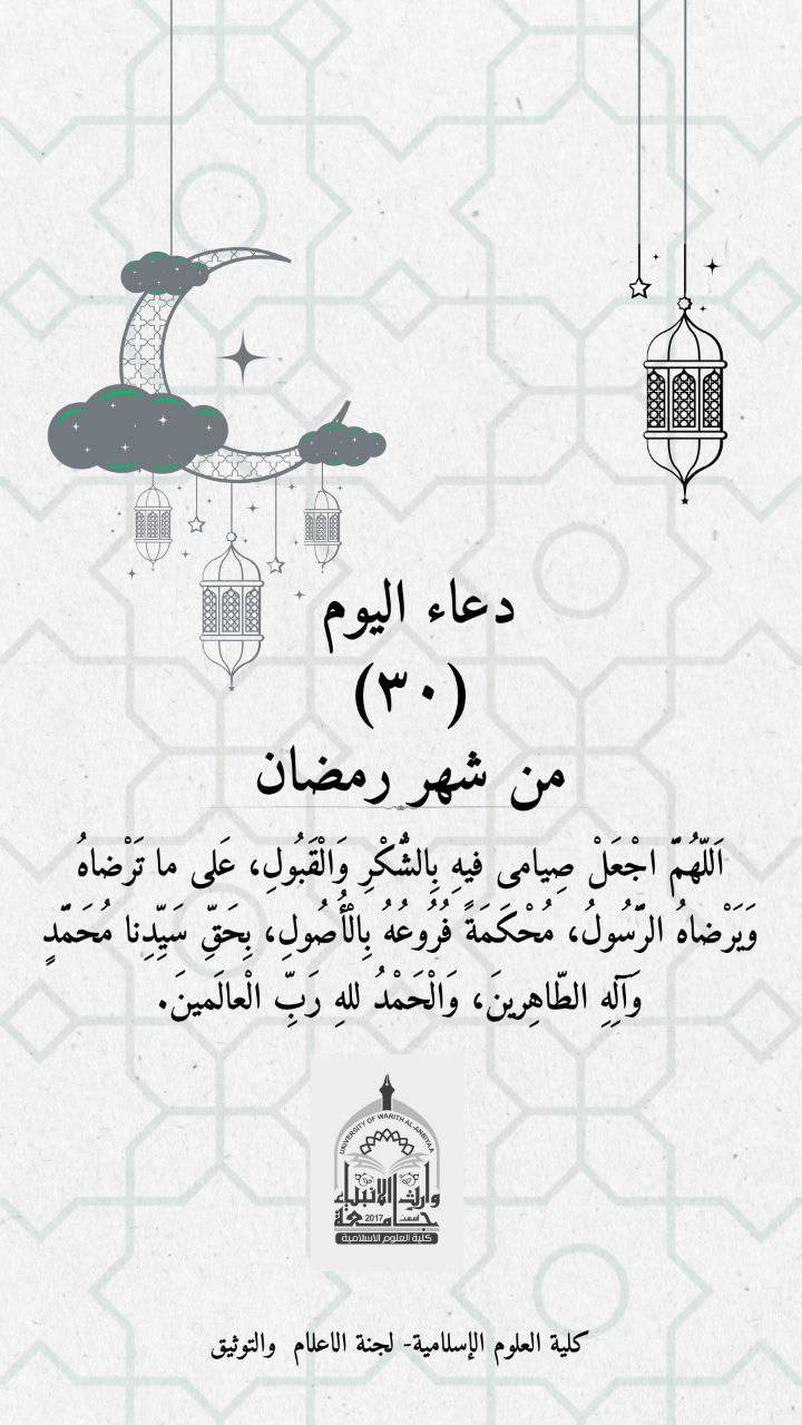 دعاء اليوم الثلاثين من شهر رمضان المبارك