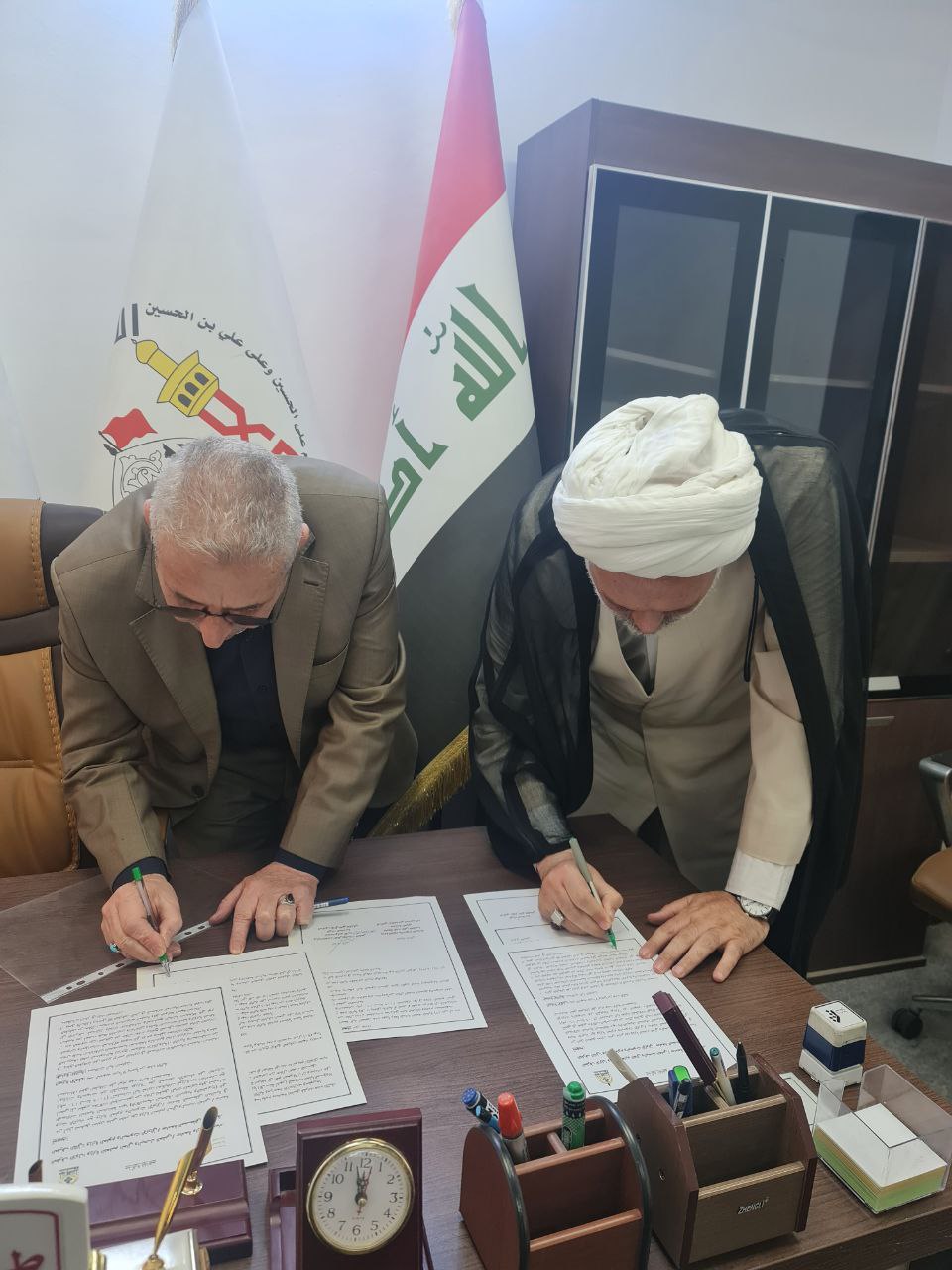 حضر التوقيع ممثل عن جامعة المصطفى العالمية، إلى جانب السيد عميد الكلية الدكتور طلال فائق الكمالي، الذي أشرف على هذا الحدث الهام.