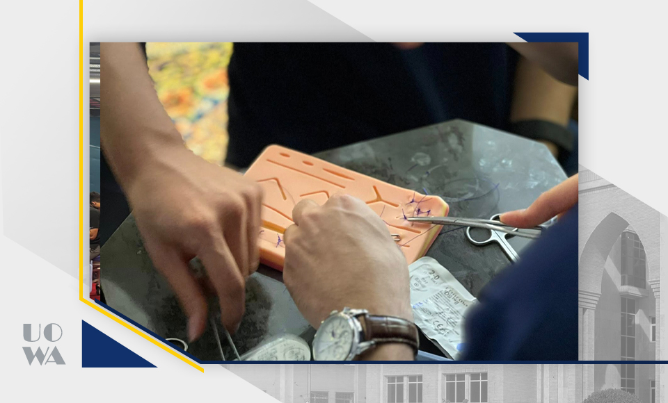 في اجواء العطاء والخدمة و بما يضمن جاهزيتهم لتقديم أفضل الخدمات الطبية في الميدان في زيارة اربعينية الامام الحسين عليه السلام جانب من سلسلة الورش التدريبية لطلبة كلية الطب في جامعة وارث الأنبياء التي نظمتها منظمة الإمامية العالمية IMI ورشة عملية بعنوان Suturing Skills قدّمها الدكتور Mudussar من الولايات المتحدة الأمريكية.