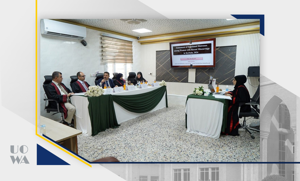 برئاسة الأستاذ الدكتور علي عبد سعدون عميد كلية الطب – جامعة وارث الأنبياء، جرت في كلية الطب – جامعة كربلاء مناقشة رسالة الدبلوم العالي والمعادل للماجستير للطالبة زينة علي حسين في فرع طب الأسرة والمجتمع والتي جاءت بعنوان “تقييم الصعوبات العاطفية بين النساء حديثات الإجهاض في كربلاء 2024”