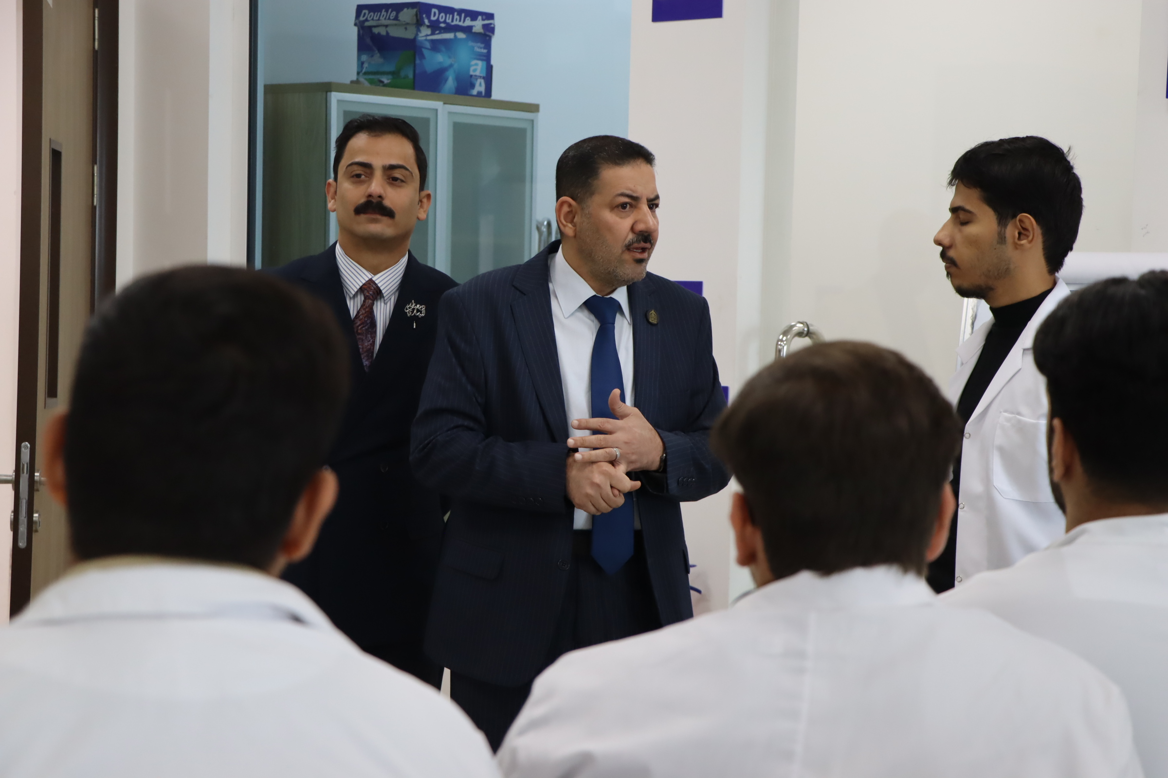 زيارة عميد كلية الطب في جامعة وارث الأنبياء (ع) لقاعات ومختبرات الكلية ولقاء كروبات العملي والمعيدين