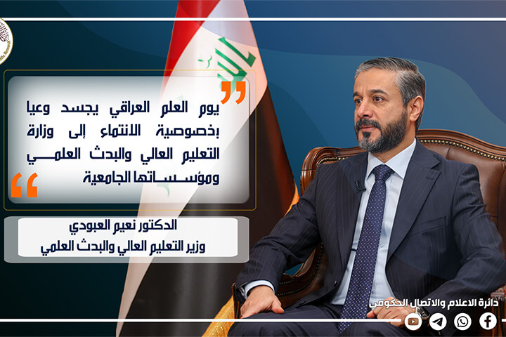 التزاما وعملا برؤيتها لترسيخ بيئة محفّزة للتميّز والإبداع تعلن وزارة التعليم العالي والبحث العلمي إطلاق التقديم الإلكتروني إلى جوائز يوم العلم العراقي الذي يستمر حتى يوم الأحد الموافق 2025/8/10.