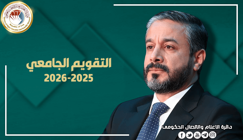 وافق وزير التعليم العالي والبحث العلمي الدكتور نعيم العبودي على التقويم الجامعي للسنة الدراسية 2026/2025 للدراسات الأولية في الجامعات الحكومية والأهلية للمراحل فوق الأولى.