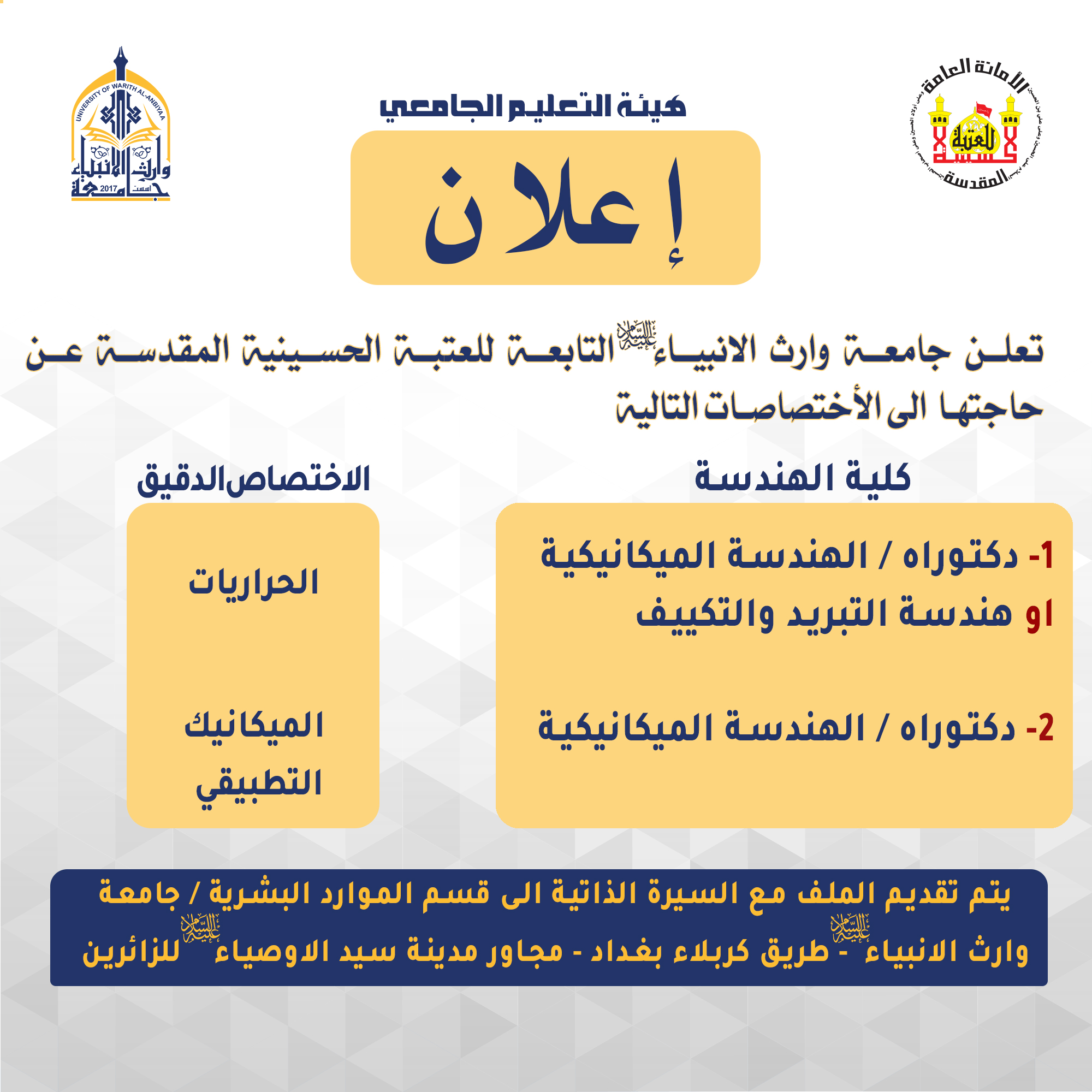 تتقدم جامعة وارث الأنبياء بكتاب شكر وتقدير إلى عمادة كلية العلوم الاسلامية ومنتسبيها على إنجازات الكلية للعام الدراسي ٢٠٢٠ / ٢٠٢١