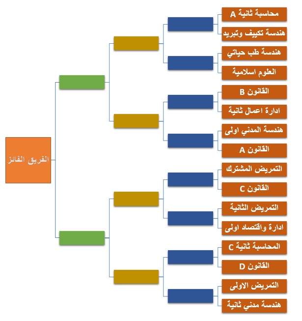 فعلى كل الفرق المشاركة الالتزام بالتعليمات التالية:1. على كل فريق الحضور قبل ربع ساعة من موعد المباراة، ويعتبر الفريق خاسر بعد (15 دقيقة) من موعد المباراة اذا لم يحضر بالملعب.2. على كل فريق الالتزام بزي موحد خاص بالفريق وكل لاعب له رقم خاص به ويشترط ان يكون الزي رياضي (شورت ودريس) ويكون الحارس بلون مغاير للفريق.3. يجب ارتداء الحذاء الخاص بالارضيات العشبية الصناعية ويمنع ارتداء الاحذية المخالفة.4. على كبتن الفريق تسليم اللجنة المنظمة قائمة بأسماء اللاعبين وارقمهم في الفريق واستمارة الاسماء الخاصة بالشعبة وباج تعريفي او هوية شخصية قبل بداية المباراة بربع ساعة على الاقل.5. يمنع دخول الفريق الى الملعب قبل انتهاء المباراة التي قبلها.6. يمنع دخول اي أحد من الطلاب او غيرهم من غير المذكورين بقائمة الفريق.7. امتثال الفريق الى قرارات الحكم والالتزام بالأخلاق والروح الرياضية، ويحق للفريق الاعتراض من قبل كابن الفريق (حصرا).8. يمنع تأجيل المباريات الا في الحالات الرسمية والظروف القاهرة (حصرا).9. يعتبر الفريق المنسحب او الغير خاضع الى شروط البطولة خاسرا والفريق المنافس فائزا بـ(3) اهداف.10. يعتبر الفريق محروم من البطولة في حالة التزوير وكذلك اللاعب المزور يحرم من اللعب حتى مع فريقه الحقيقي.