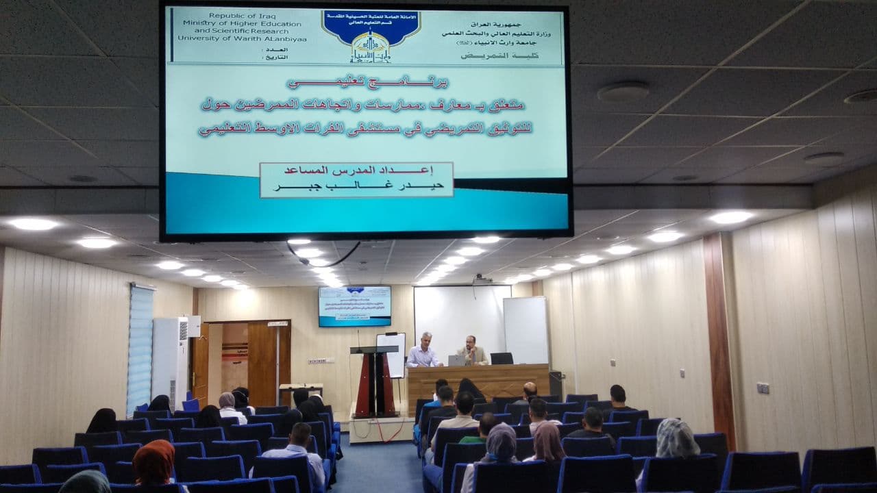 مدرب دولي معتمد وتدريسي في كلية التمريض - جامعة وارث الانبياء ع يقيم برنامج تعليمي للملاكات التمريضية