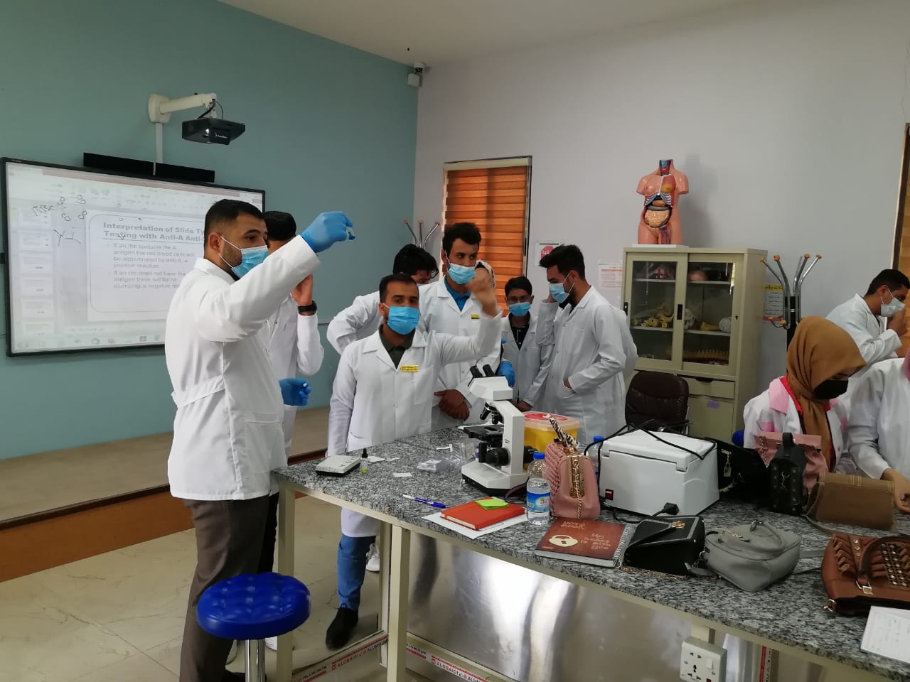 استمرار اكمال المحتوى التدريبي المقرر ضمن البرنامج التعليمي لطلبة كلية التمريض في جامعة وارث الانبياء ع في المحتبرات العلمية